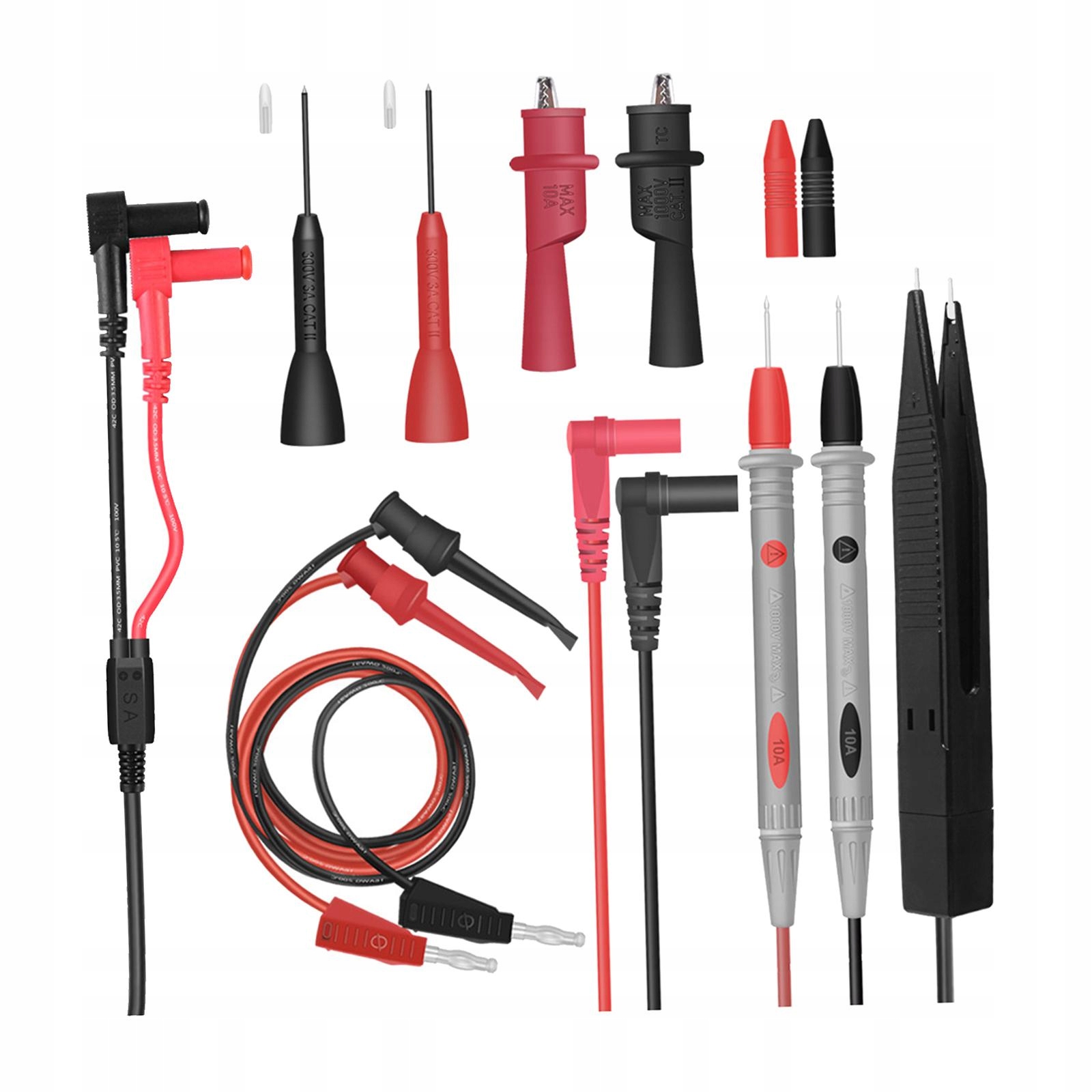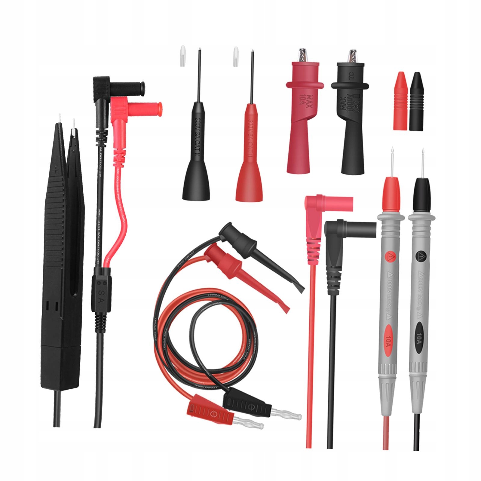 [Багатофункціональні]: ці кабелі мультиметра мають багатофункціональні затискачі, тестові гачки та задні зонди, змінні позолочені тестові зонди мультиметра, які використовуються в різних вимірювальних середовищах, таких як електроніка, промисловість, будинки та автомобілі.