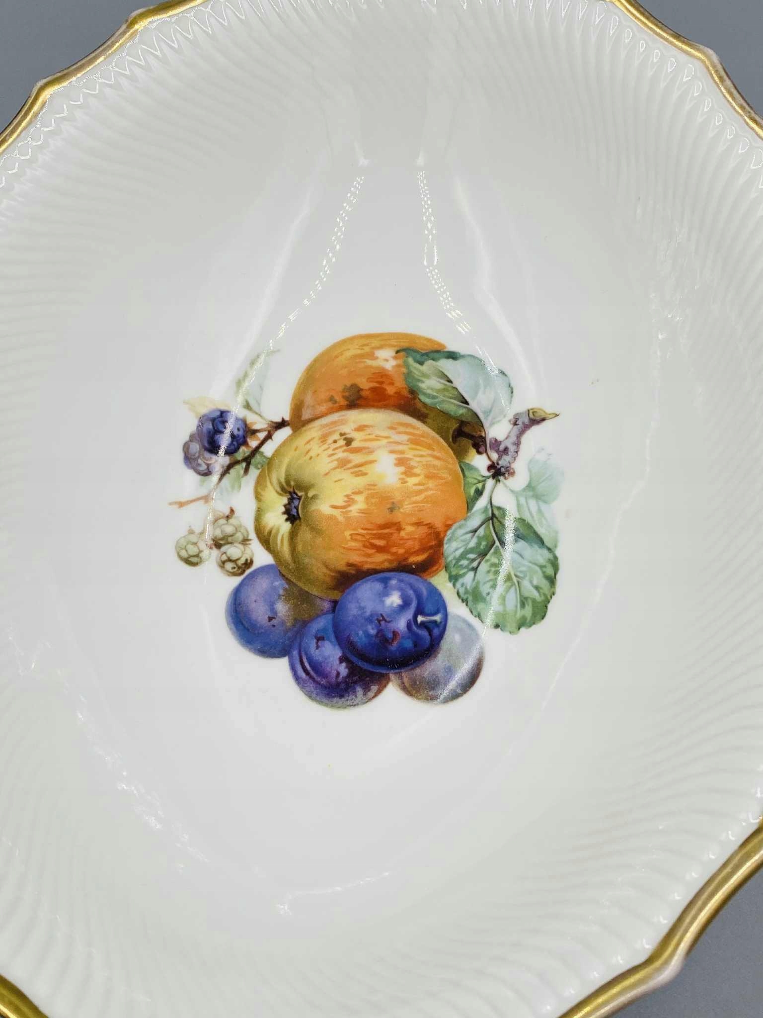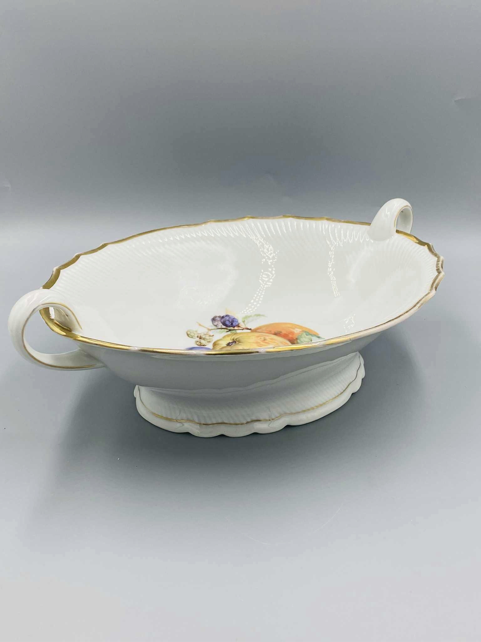 Біла порцеляна з фруктовим розписом. Позолочені краї та ручки.