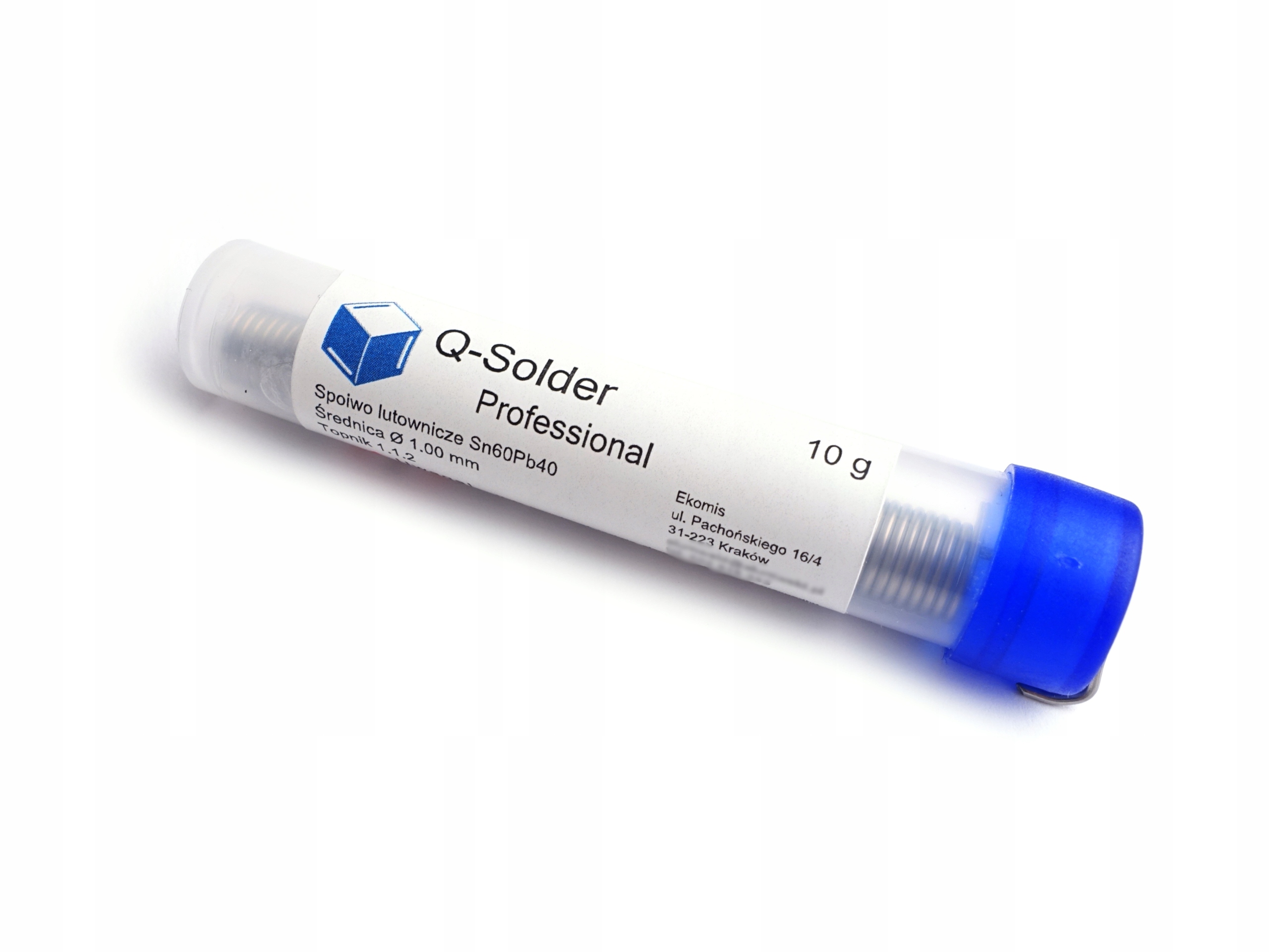 Професійна пайка Q-Солдера SN60PB40 (LC60) з діаметром Ø1 мм з потоком у ядрі, відповідно до PN EN 29453: 2000. Призначений для паяльних електронних та електричних компонентів. Висока якість продукту забезпечується відсутністю доступу до повітря під час плавлення. флакон містить 10 г в'яжучого.