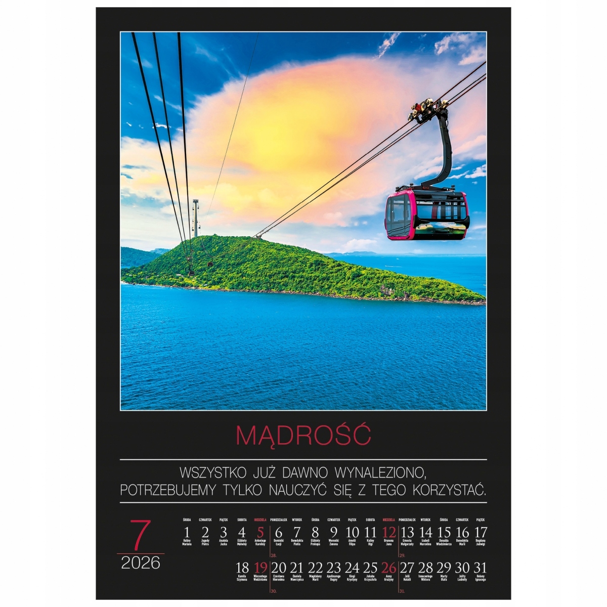 Практичний, прозорий календар з польськими святами та днями імен сприятиме плануванню та допоможе запам'ятати важливі події. Зручний формат вертикальної картки полегшує використання календаря. Великі фотографії - це надзвичайна перевага - вони привертають увагу, надихають, насолоджуються своєю красою та глибиною.