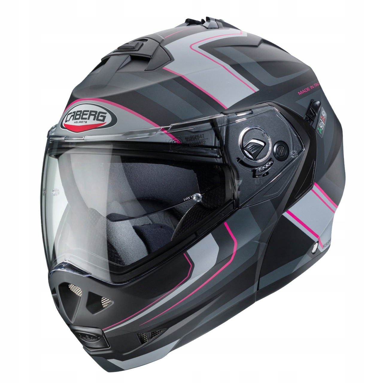 Шолом 100% виробництва Італії. Подвійне схвалення (E3/P) для анфас і анфас шоломів і 5/5 зірок SHARP - знак найвищих стандартів безпеки. Шолом адаптований до систем Bluetooth від Caberga та універсальних. Корпус: полікарбонат, підкладка: повністю знімна, миється зі світловідбиваючими вставками і додатковими сріблястими нитками з антибактеріальним ефектом, знімний вітровий чохол. Вентиляція: захист підборіддя, вентиляція щелеп і регульована вентиляція у верхній частині раковини. Козирок: прозора лінза зі стійкого до подряпин матеріалу та сонцезахисний козирок.