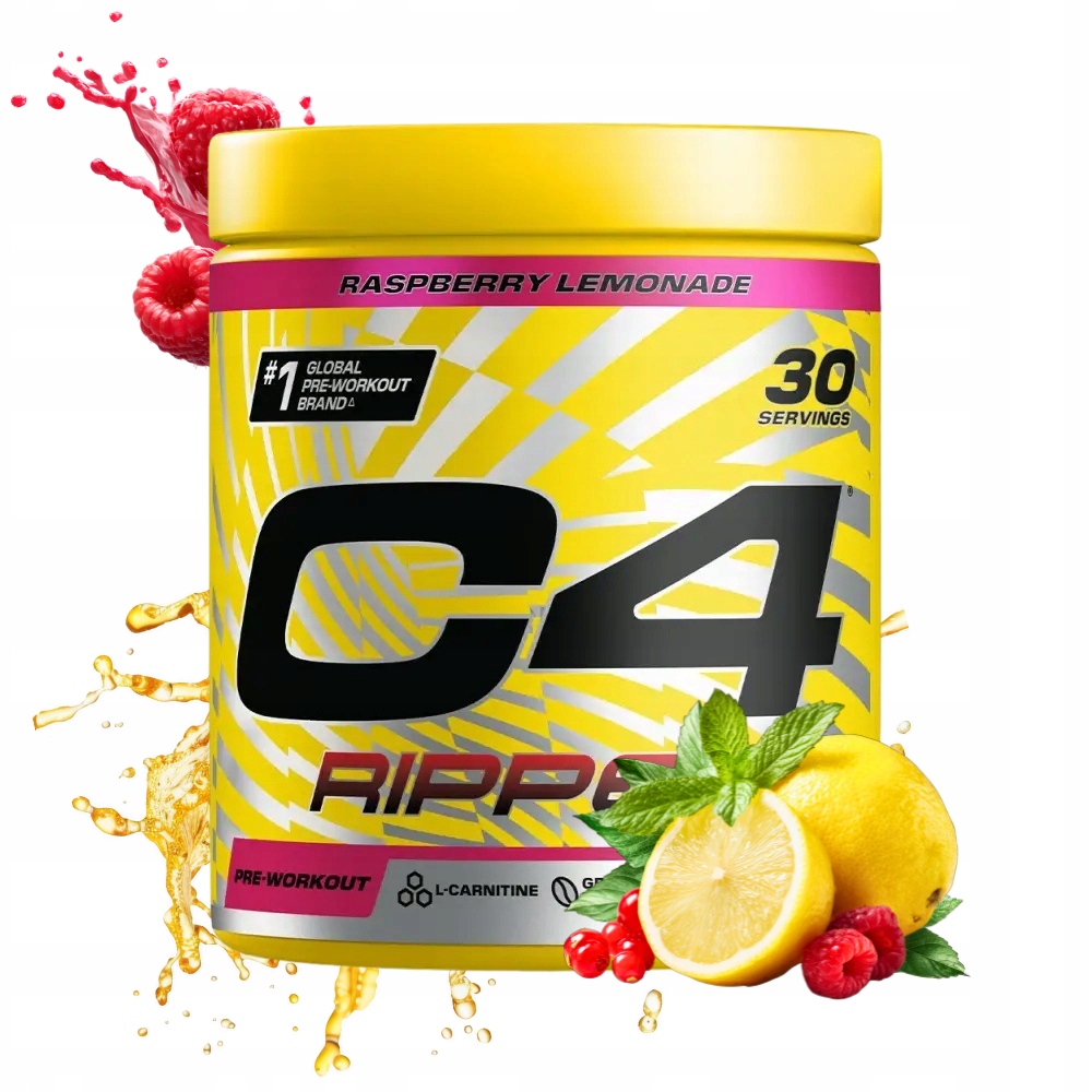 ✔️ C4 Ripped Raspberry Lemonade — це добавка перед тренуванням, створена для людей, які поєднують тренування на силу або витривалість із зменшенням жирової тканини. Він містить бета-аланін і L-цитрулін для підтримки продуктивності та уповільнення м'язової втоми, а також L-тирозин і кофеїн для покращення концентрації та стимуляції. Додавання L-карнітину, екстракту зеленої кави та стандартизованого екстракту кайенського перцю Capsimax призначене для підтримки енергетичного обміну та термогенезу, що робить продукт популярним вибором під час періоду зниження.