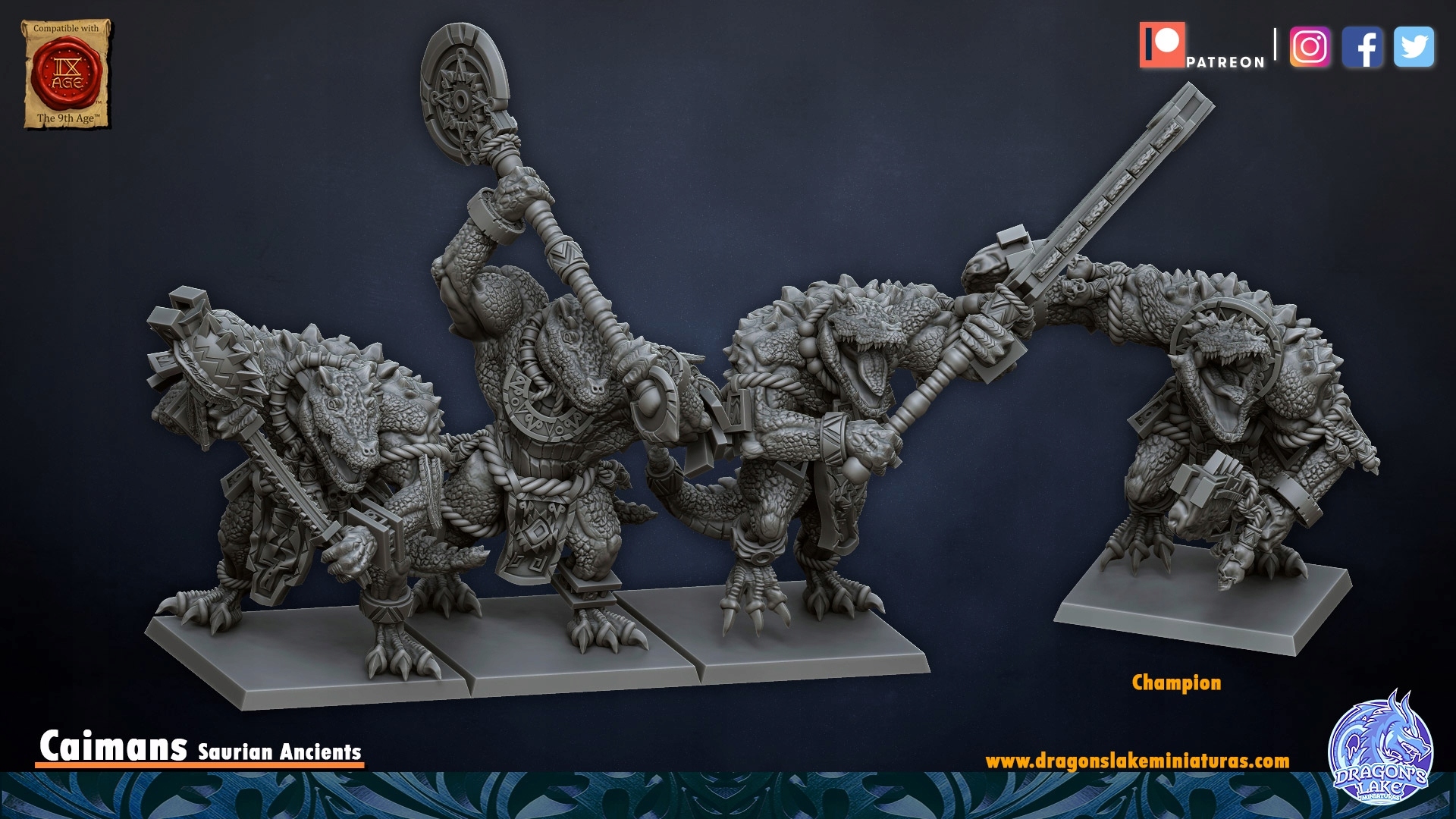 Тема пропозиції - це набір з трьох моделей Каймана та героя Каймана з мініатюр озера Драконів, надрукованих на 3D -принтері в технології SLA.