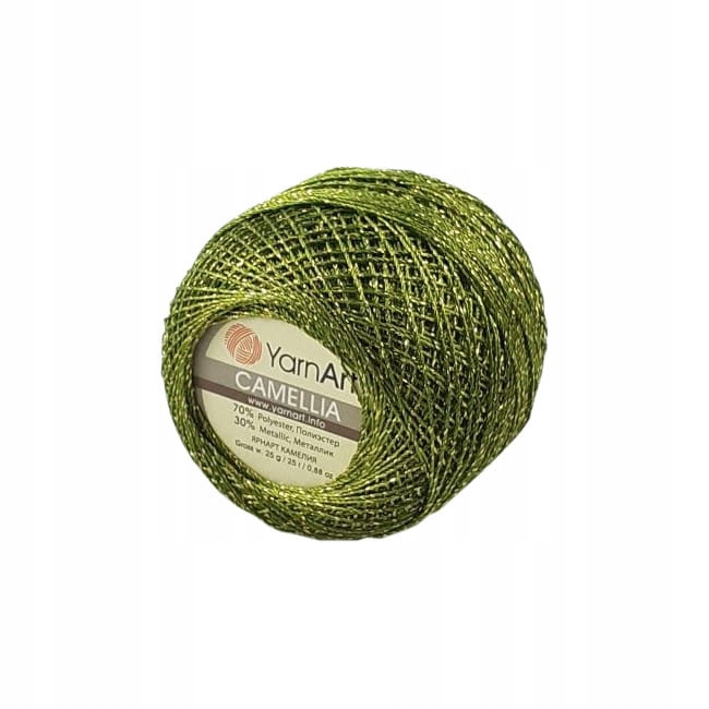 Поліестерний шнур з 30% додаванням металізованої нитки. Він делікатний і дозволить отримати приголомшливі результати. Ваша ялинка порадує всіх прикрашених дрібничками, дзвонами або зірками, виготовленими з Yarnart Camelia. Металізовані шнури, щоб ви могли прикрасити свою ялинку оригінальним способом. Роботи, виготовлені з нитки Камелії, будуть делікатними та красиво мерехтливими у світлі світильників ялинки.