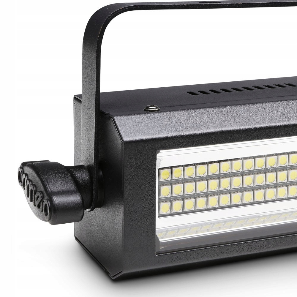 Грім промивання 100 rgb - це строб, бліндр і промивання світла в одному пристрої. Пристрій оснащений світлодіодним SMD 132 RGB, кожен з яких має 0,2 Вт, широкий кут світла- 80 ° і має корпус чорного металу з універсальною ручкою. Частота та довжина спалаху та здатність працювати в режимі Master, Slave або Stainone. Для управління пристроєм використовується чіткий світлодіодний дисплей з кнопками вгору, вгору та вниз. Вбудований мікрофон дозволяє керувати звуком.