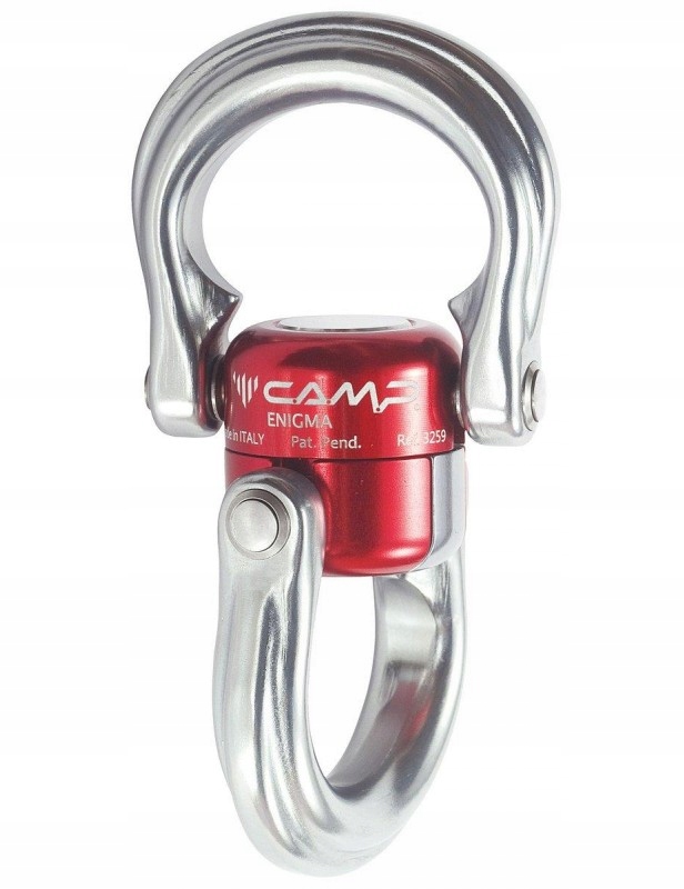 Enigma — це вертлюг із великими дужками, який можна повністю розкласти. Підходить для з'єднання текстильних і металевих елементів без необхідності використання додаткових карабінів. Рухливість вертлюга забезпечує дуже великий діапазон і орієнтацію руху.