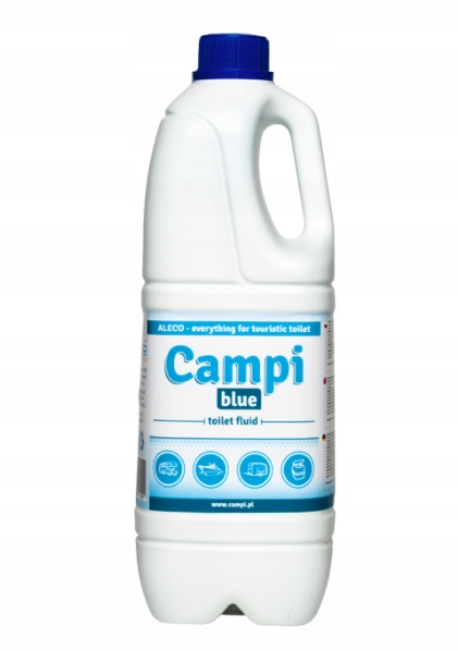 Campi Blue - це концентрована рідина, поширює вміст у резервуарах для фекалій у портативних туалетах та постійних туалетних пристроях у караванах та на яхтах.