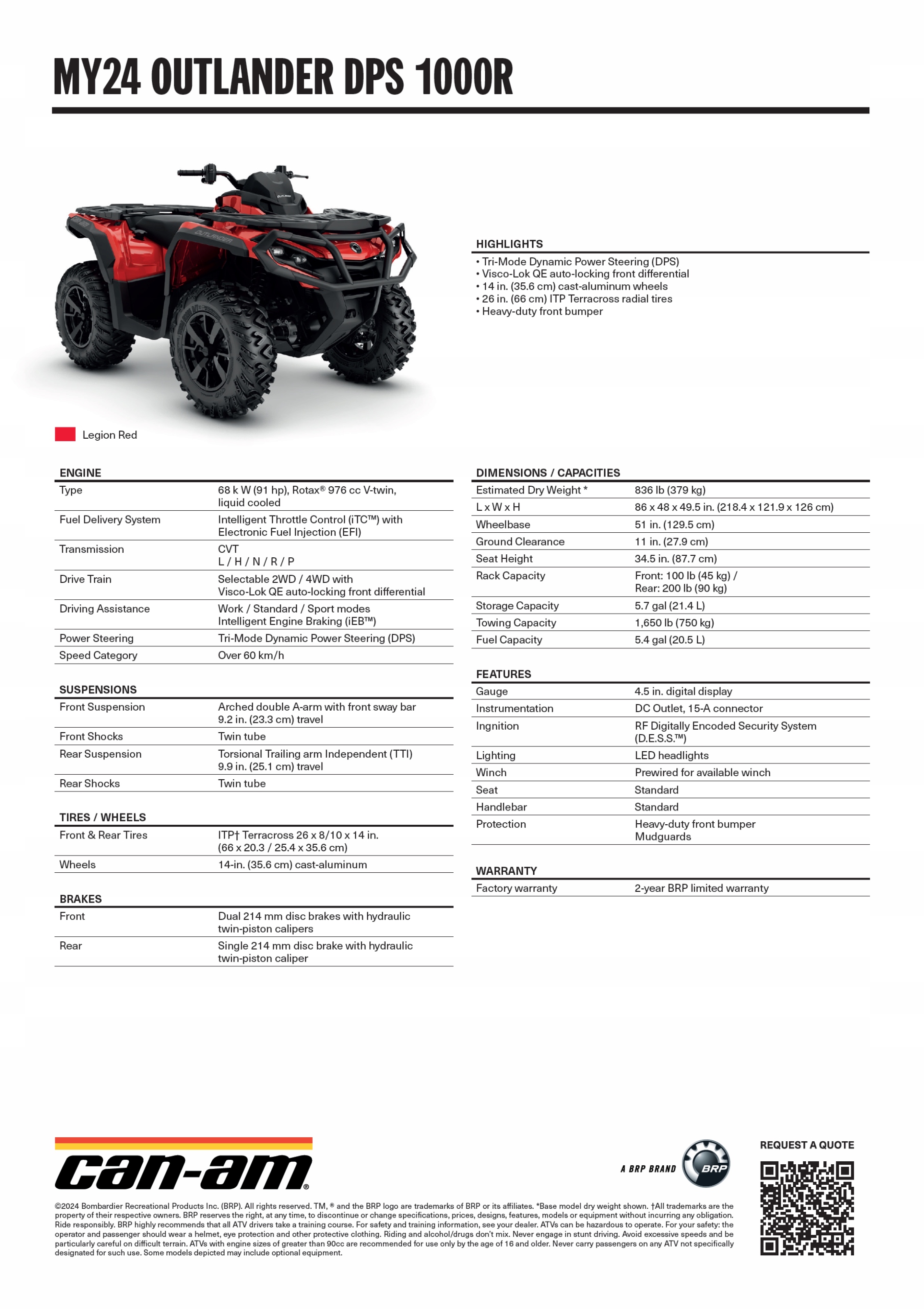 Can Am Outlander DPS 1000R T3 VAT 23% Model 2024 WYPRZEDAŻ ROCZNIKA