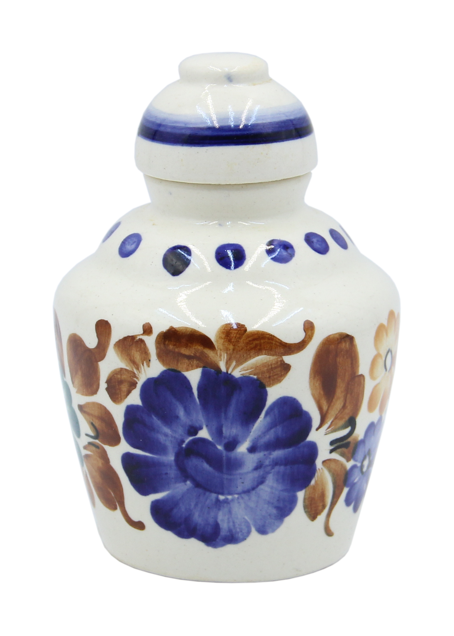 Фаянсова банка для сипучих виробів із Влоцлавека 1970-1980-х років. Підписано. Ручний розпис. Шаблон 1412, затверджений у 1977 році. Дизайн Барбари Скшипач. Розміри: 13,5 х 9,5 см. Рекомендую колекціонерам