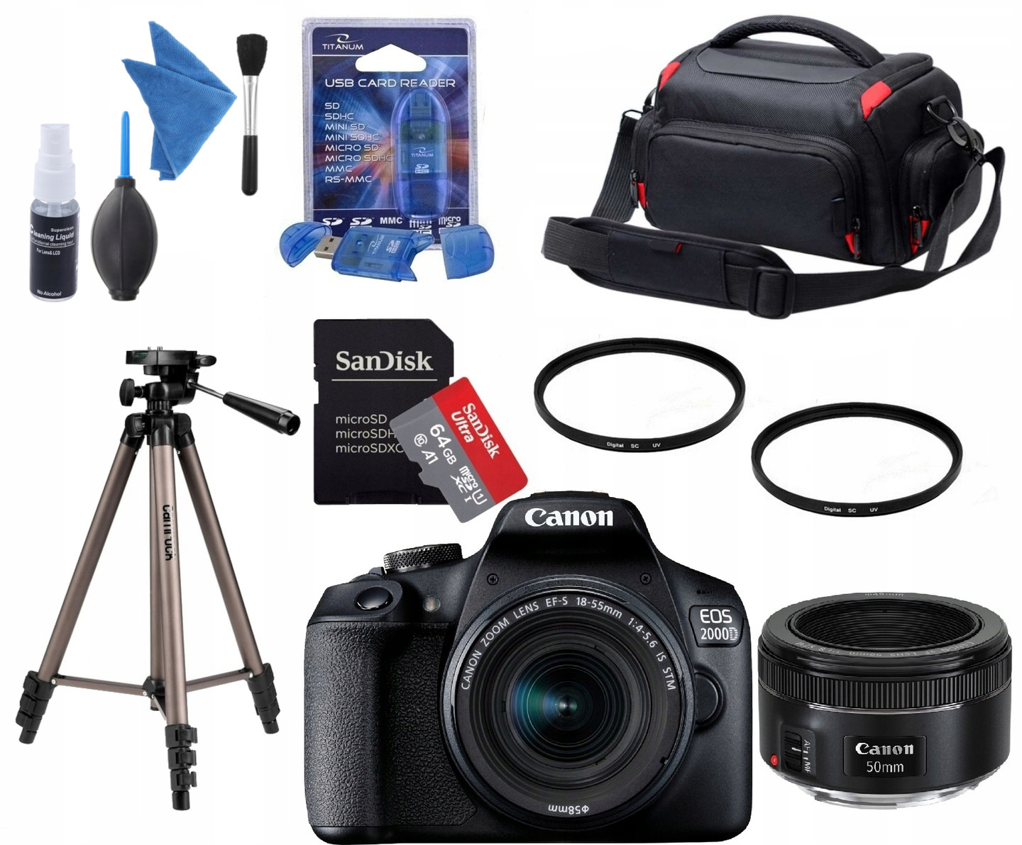 Просматривая «CANON EOS 2000D + 18-55 IS STM + EF 50MM F 1.8 STM ПОРТРЕТ + АКСЕССУАРЫ», вы можете быть уверены, что данный товар из каталога «Зеркальные фотокамеры» будет доставлен из Польши и проверен на целостность. В цене товара, указанной на сайте, учтена доставка из Польши. Внимание!!! Товары для Евросоюза, согласно законодательству стран Евросоюза, могут отличаться упаковкой или наполнением.