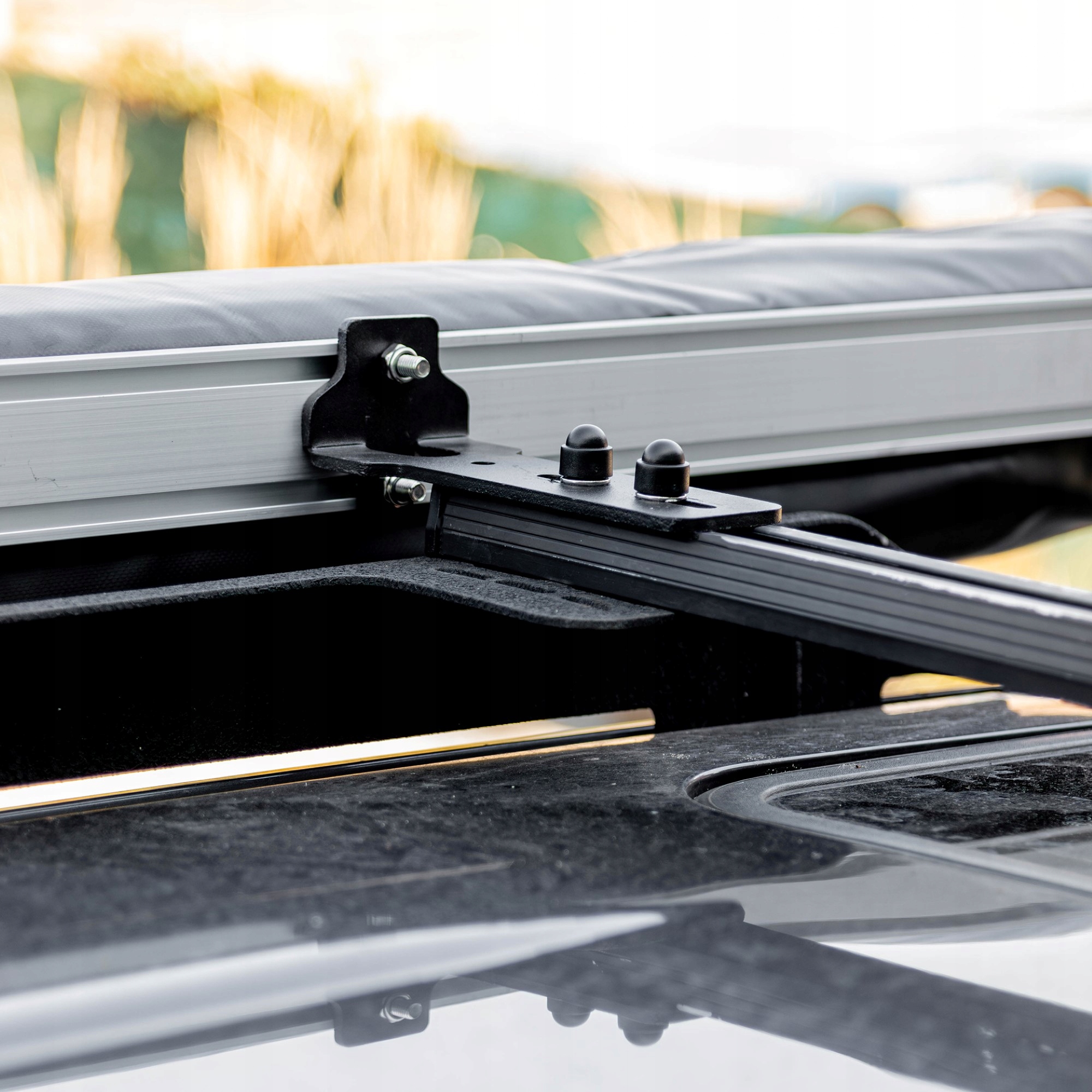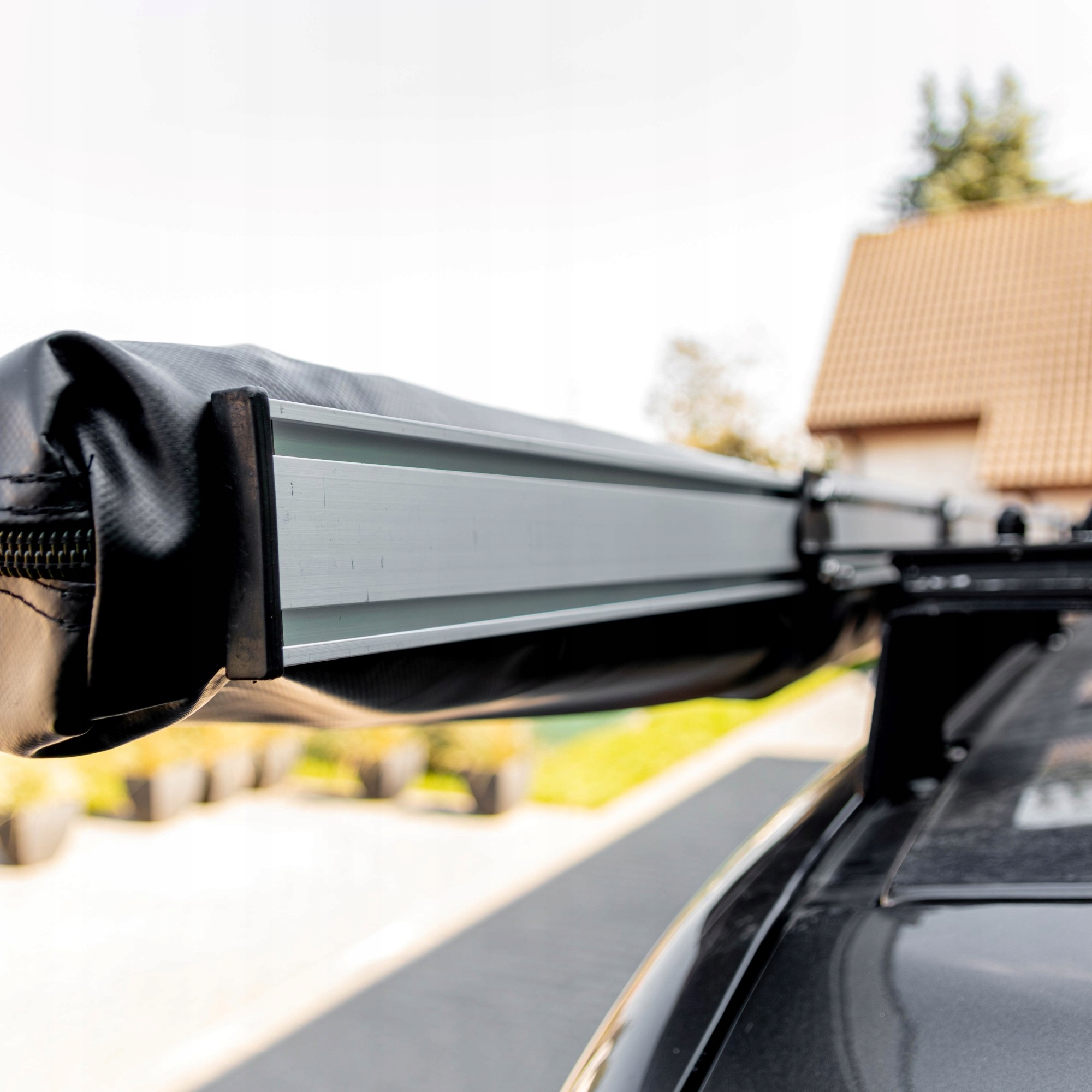 Просто прикріпіть його до даху автомобіля з боку водія за допомогою спеціальних кронштейнів. Бічний капюшон легко розкладається самостійно, що робить його практичним і функціональним аксесуаром у подорожі.