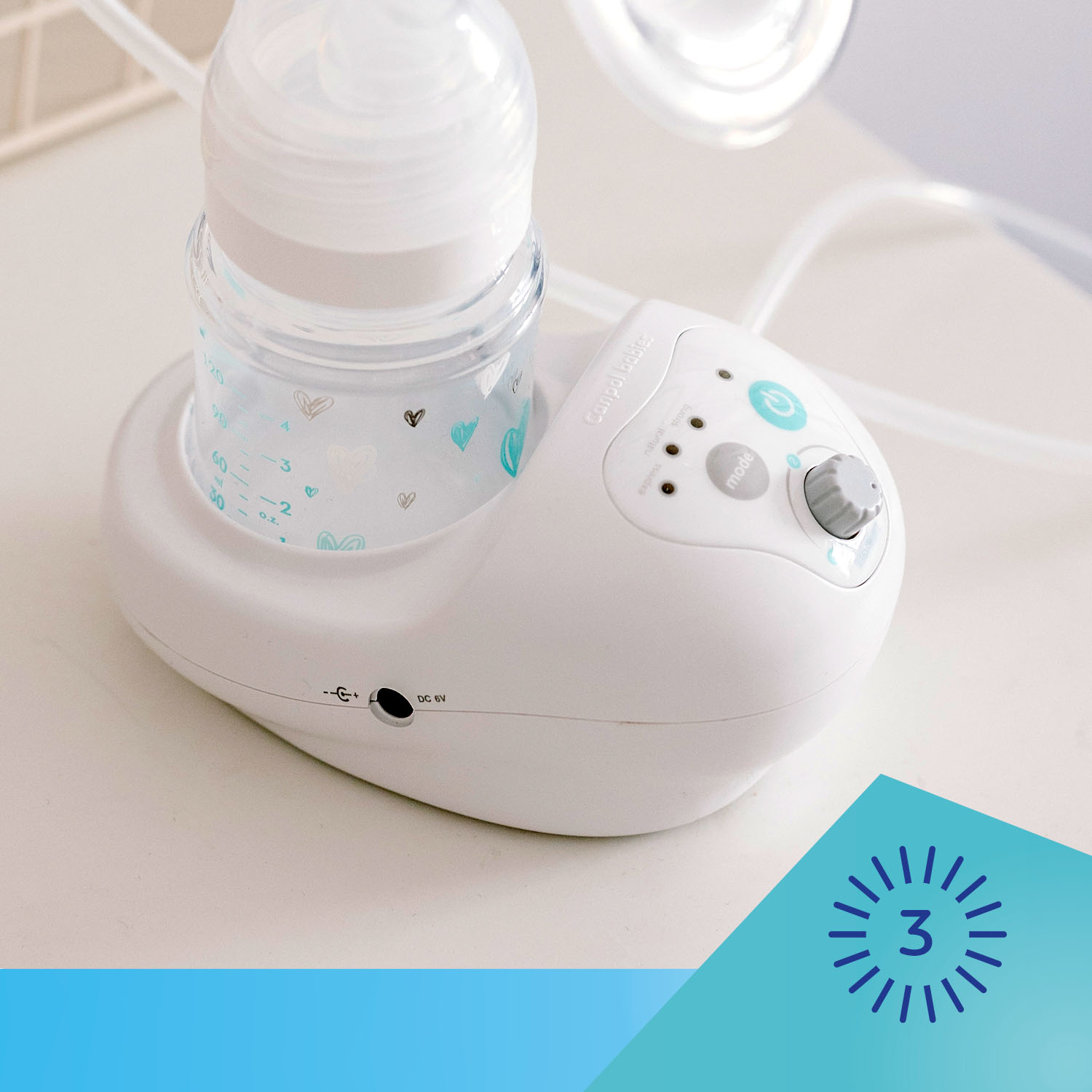 Відтворюєприродний двофазний ритм смоктання дитини. Він працює дуже тихо, тож дозволяє вам повністю розслабитися під час зціджування молока.