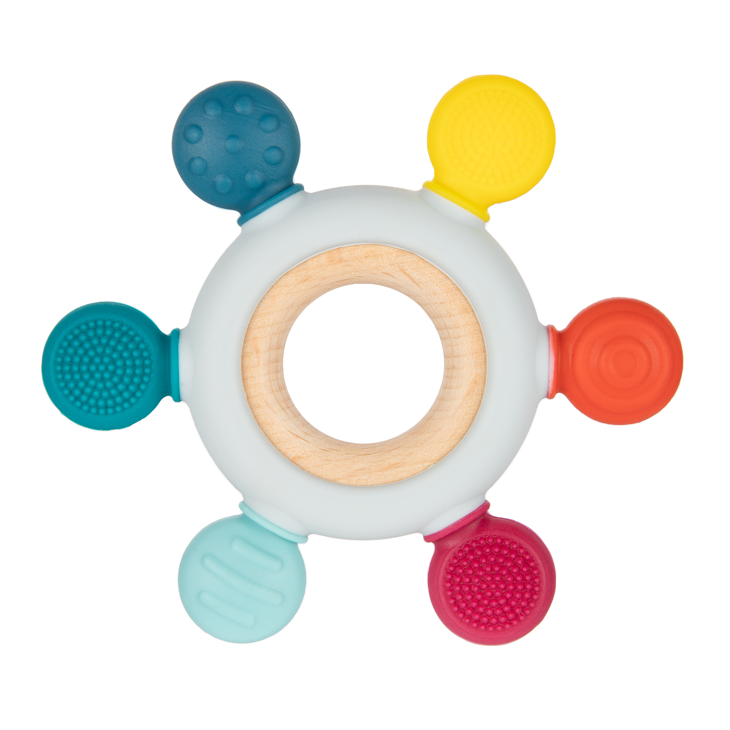 Дерев'яно-силіконовий прорізувач - ідеальне рішення для прорізування зубів у немовлят. Виготовлений з натуральної деревини бука і безпечного силікону. Комбінація матеріалів з різною твердістю і текстурою полегшить малюкові при прорізуванні зубів при кусанні і масажі роздратованих ясен.