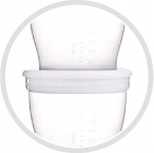 Вони мають щільні кришки, тому нічого не висипається. навіть коли контейнер нахилений. Їх можна складати один на одного. Мають чітку шкалу. Кришка також може працювати як підставка - для кращої стабілізації під час наливання рідини.