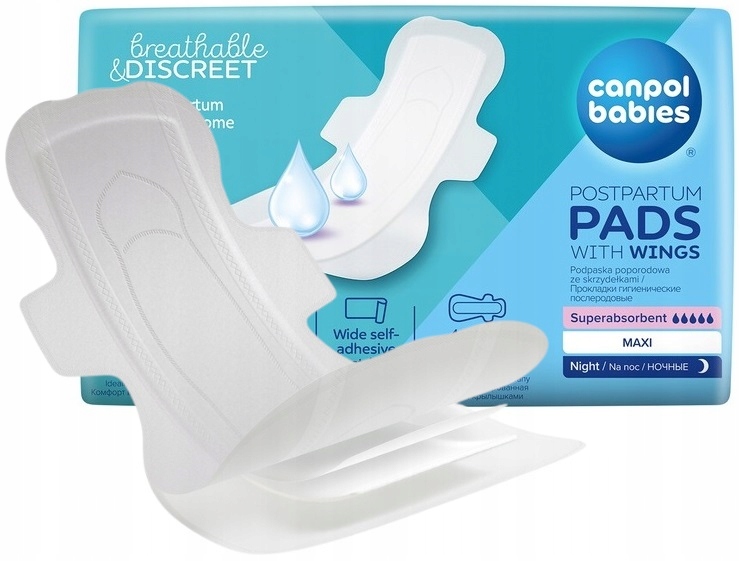 Суперабсорбуючі післяпологові прокладки Canpol babies є ідеальним рішенням для жінок після пологів для використання вдома після виходу з лікарні. Післяпологові прокладки тонші та непомітніші, ніж післяпологові прокладки, але також добре вбирають і пропускають повітря.