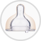 Пляшечка має ніжну соску 3+ із високоякісного силікону, яка нагадує форма соски. Пустушка також оснащена спеціальним антиколіковим клапаном, який запобігає утворенню повітряних бульбашок у їжі та таким чином знижує ризик колік, болю в животі, надмірної відрижки та накопичення газів. Все це для щасливого животика вашої дитини!