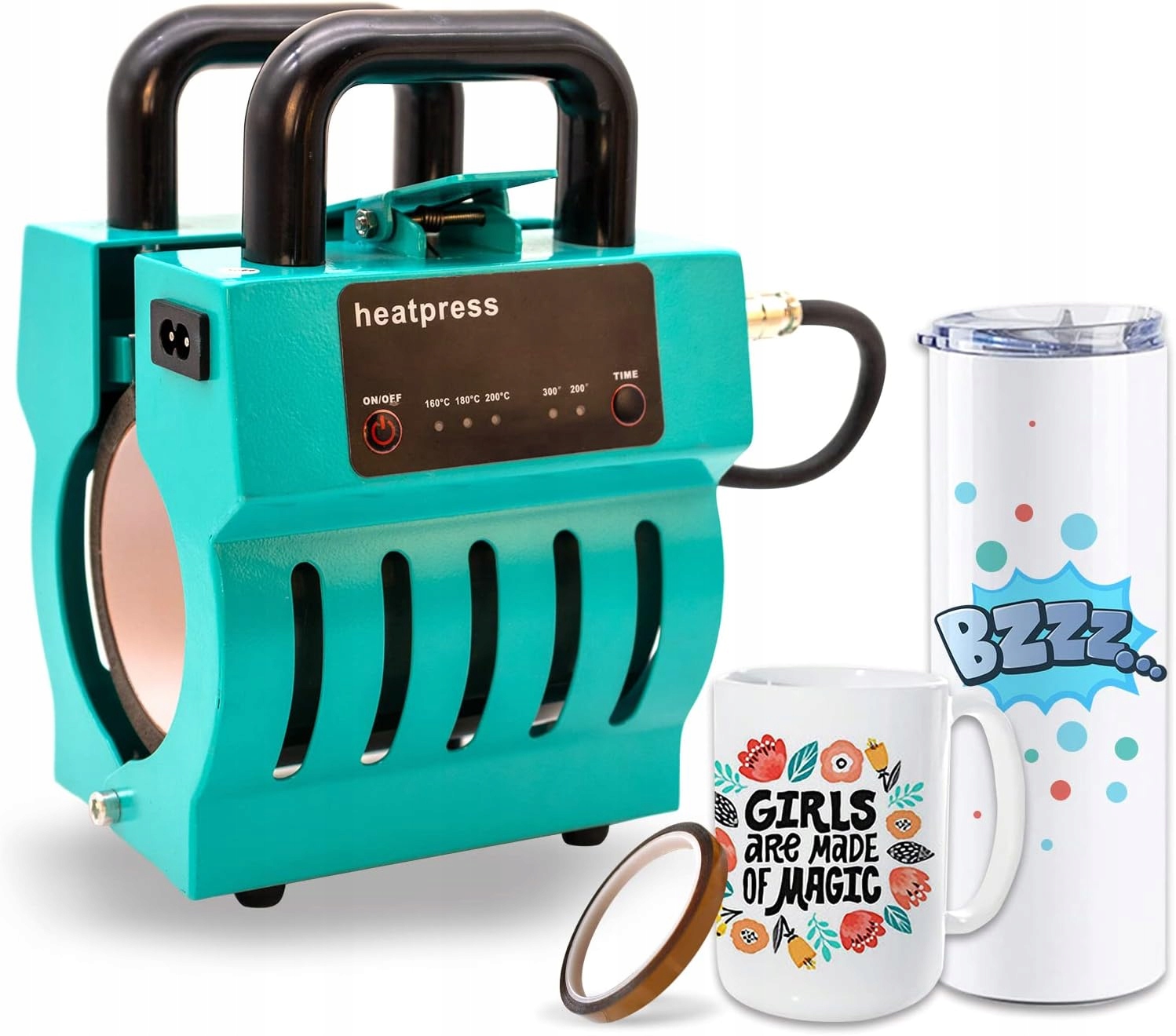 Контроль температури та налаштування часу: прес для кухлів із триступеневим контролем температури, 160°C (320°F), 180°C (356°F), 200°C (392°F). Двоступеневий контроль часу: 200С, 300С.