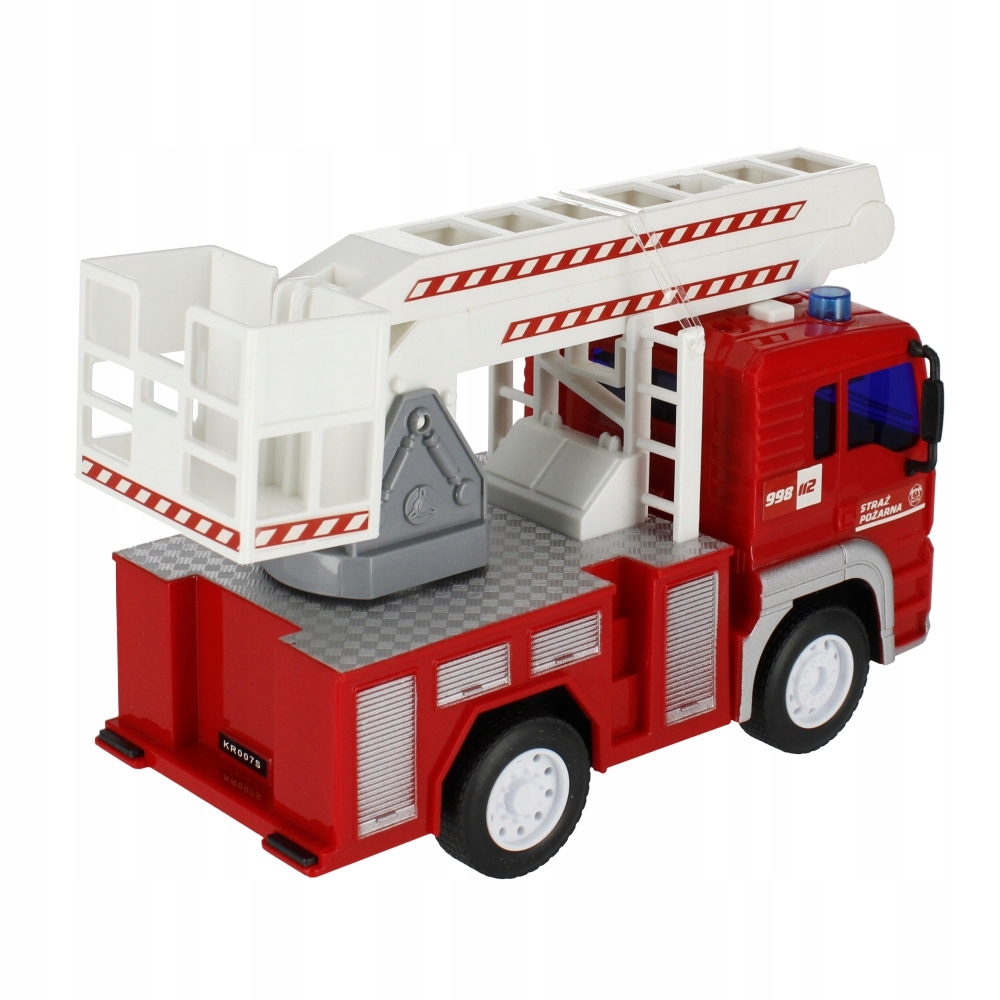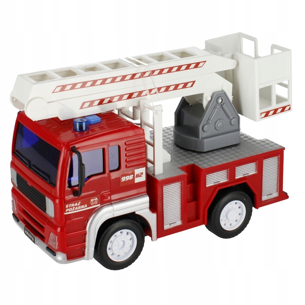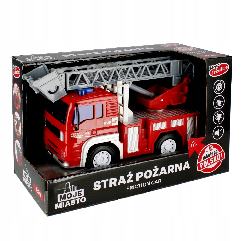Переваги продукту: Fire Department 998 — це модель сучасного транспортного засобу із серії Moje Miasto, що має ряд можливостей і ефектів, що дозволяють різноманітно розвивати гру. Після натискання кнопок, розташованих на даху автомобіля, активуються функції світла та звуку. Кожна кнопка активує характерні звуки та фрази, які промовляє оповідач польською мовою: Сигналізація Сигналізація Екіпаж Підійдіть до машини Включіть воду Витягніть драбину Я повідомляю про закінчення дії. Пожежу ліквідовано. Вміст набору: 1 пожежна машина. Автомобіль доступний у двох кольорових варіантах драбини: з білою драбиною та з сірою драбиною. Особливості виробу: привід рухомих елементів. ТЕХНІЧНІ ХАРАКТЕРИСТИКИ ПРОДУКТУ: Товар упакований у відкриту коробку. Для виробу потрібні батарейки: 3x AG-13 1,5 В входять до комплекту іграшки. Матеріал: пластик. Товар виробництва Китай, дистриб'ютор Євро-Трейд. Розміри виробу: довжина х глибина см 21x12x8, вага виробу кг. 0,23 кг. Розміри упаковки: довжина х висота х глибина см 24x16x12, вага упаковки кг. 0,38 кг. Призначений для дітей від 3 років. Упаковано в коробку з віконцем. Кількість у збірній коробці: 36 шт.