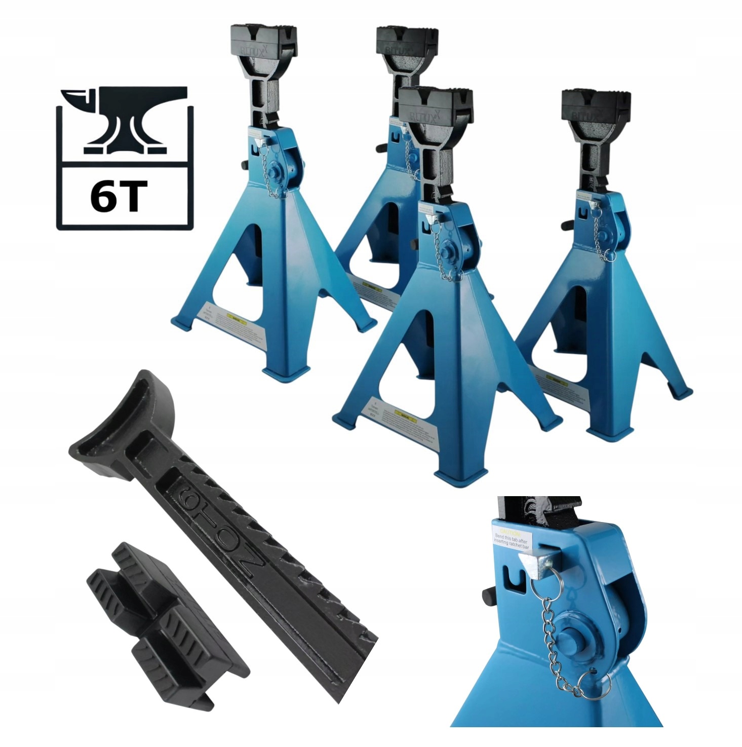 Набір з 4 підставок для автомобіля вантажопідйомністю 6 тонн кожна, з 13-ступінчастим регулюванням (41,5-61 см). Виготовлені з міцної сталі та чавуну, вони забезпечують максимальну безпеку під час роботи. Незамінний у кожній майстерні! 🔧🚗