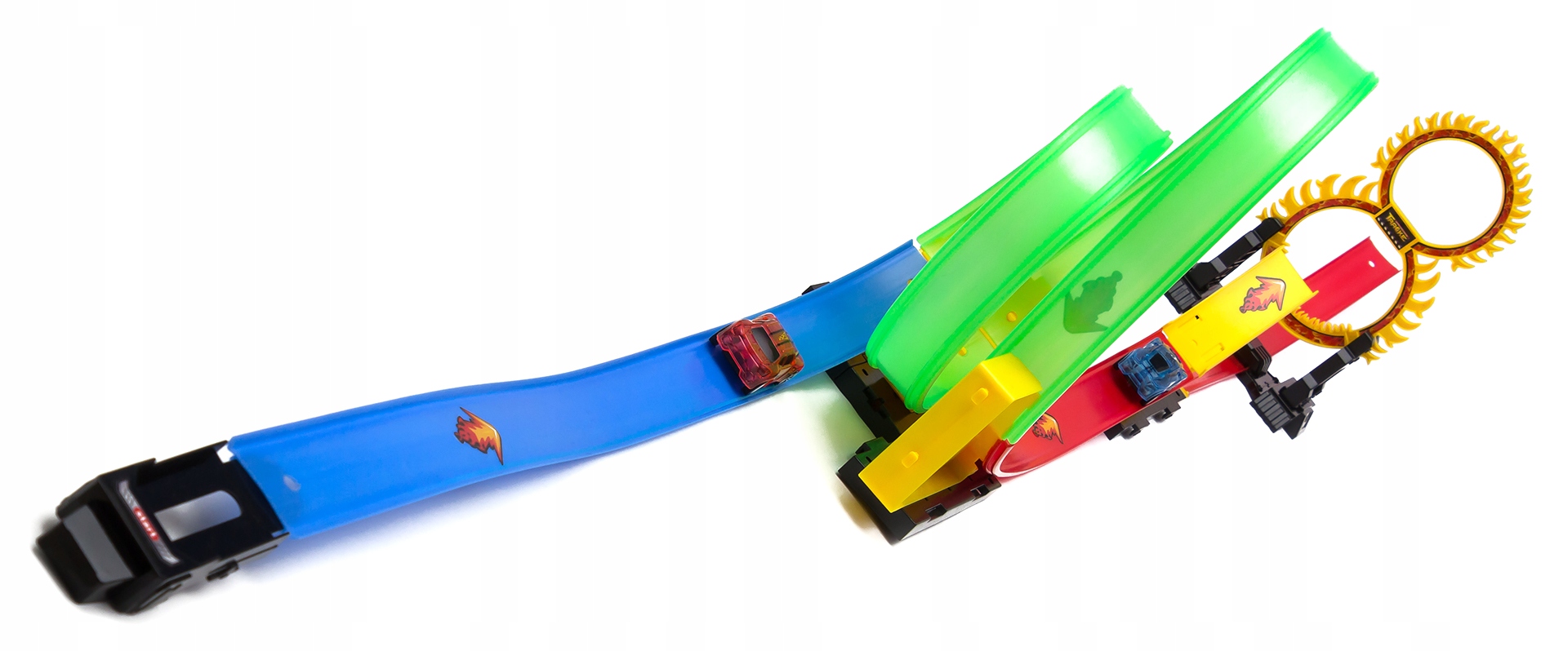 Автомобільний трек, що складається з 22 елементів. Це ідеальна пропозиція для всіх любителів екстремального водіння! Машина має дві надзвичайно небезпечні петлі на 360 градусів. Після їх подолання автомобіль отримає додатковий атракціон у вигляді стрибка і 2 кілець з імітацією вогню.