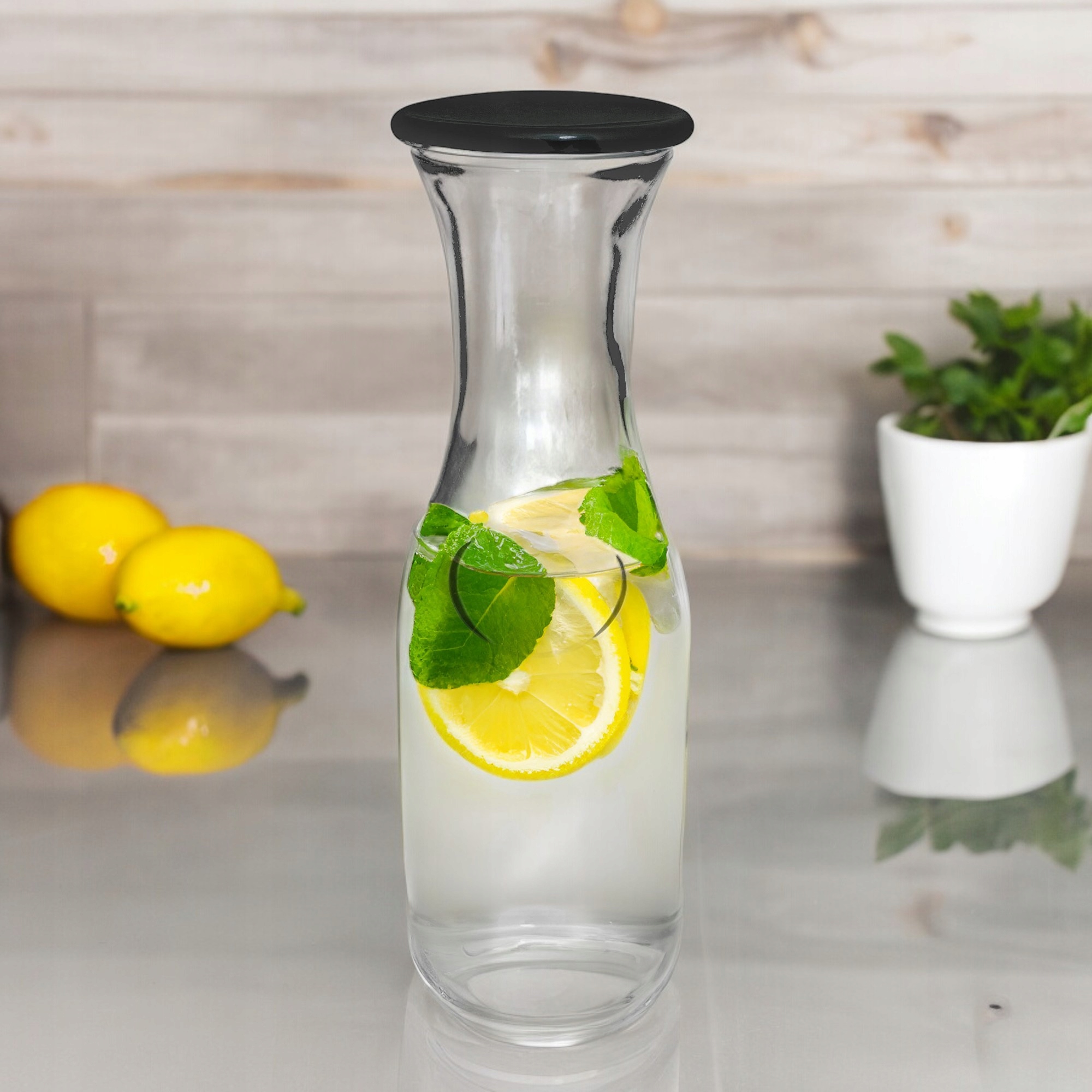 Винний караф, вода, чай, лимонад та інші напої виготовляли з найвищої якості. повністю безпечний для здоров'я та затверджено для контакту з їжею. Використовувати його безпечно та зручно - караф має міцне, стабільне дно та хорошу прозорість. Підходить для подачі соки, напоїв та води. Його класична форма буде прикрасою будь -якого столу та дому. Караф ідеально підходить для шанувальників італійського клімату. має цікаву конструкцію - закритий пластиковою кришкою, захищає напої від комах.