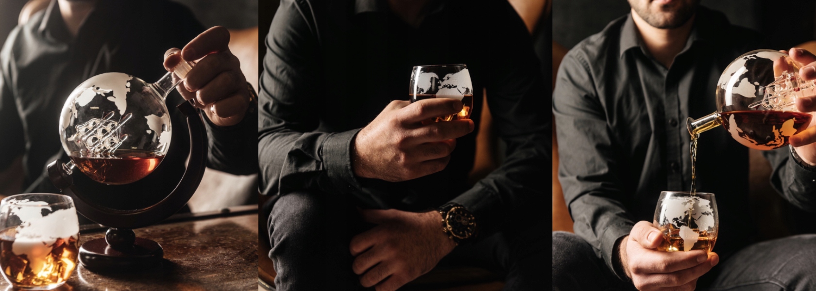 Унікальний дизайн, укладений глобусами, додає елегантності та стилю будь -якому інтер'єру, незалежно від розташування. Кафе виглядає чудово як для повного напою, так і для порожнього, створюючи вражаючу прикрасу на стільниці або полиці. Це чудовий вибір для подарунка для цінителів віскі та мандрівників.