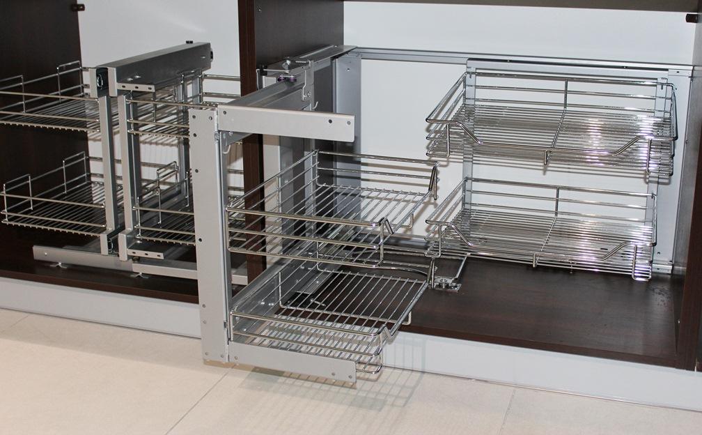 - Corner Magic оснащений кульковими напрямними з системою повного висування та системою Close-Close, а також функцією тихого закривання шафи