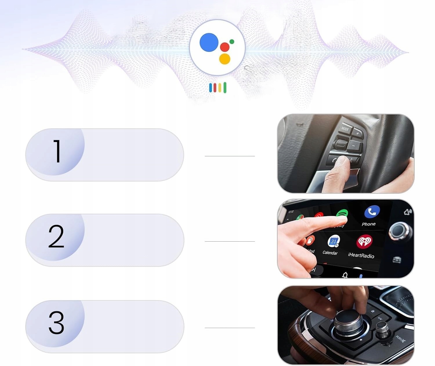 - Дозволяє використовувати навігацію, дзвінки в режимі hands-free, музику, голосові помічники та багато інших функцій.