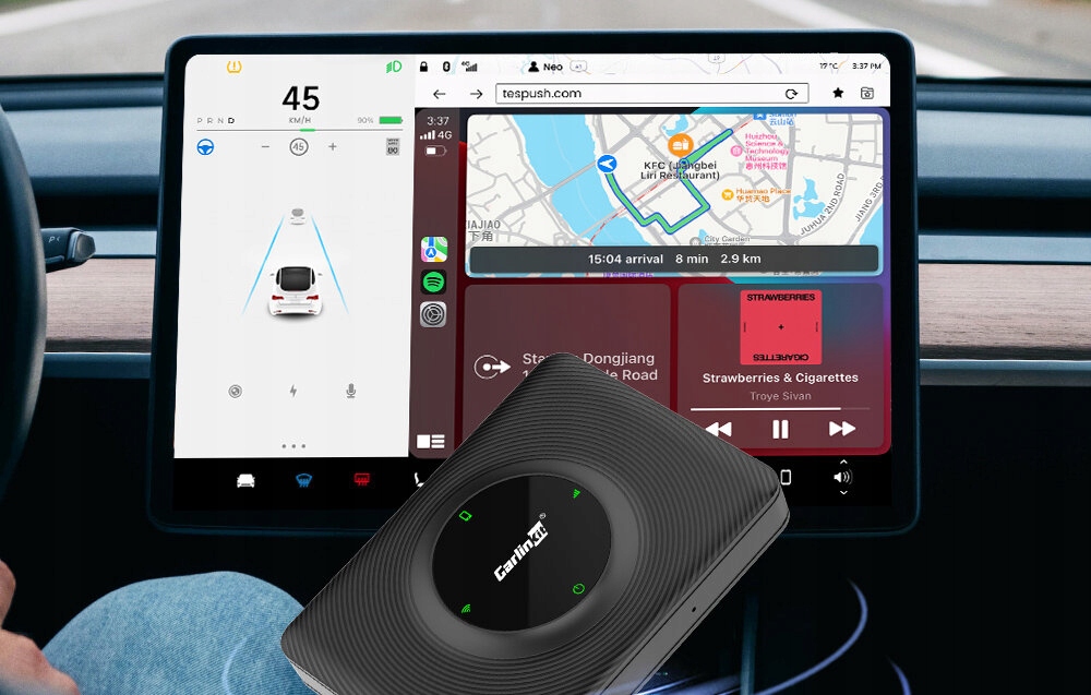 ✅ Carlinkit CPC200 -T2C -це спеціалізований адаптер, який дозволяє підтримувати Apple Carplay та Android Auto у автомобілях Tesla. Він бездротово підключається через точку доступу телефону і працює через браузер системи Tesla OS, не потребує жодних модифікацій програмного забезпечення чи встановлення додатків.