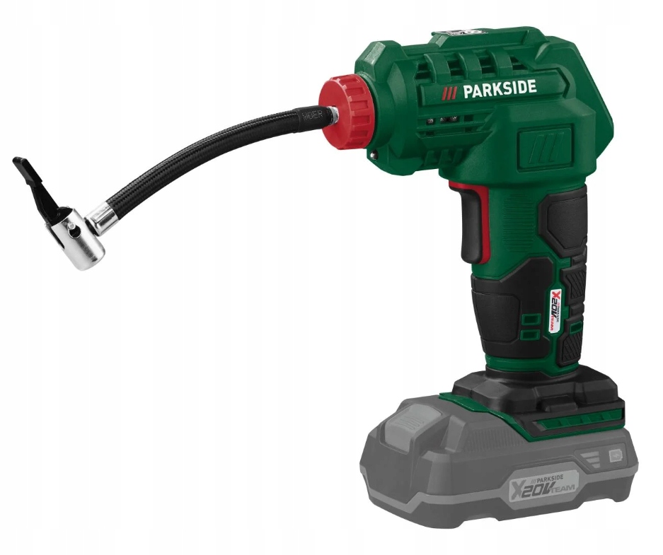 Parkside 20V (20 В (завдяки компактному корпусу , гумкованій ручці та побудованому -in РК -дисплея компресор зручно використовувати та точно адаптувати тиск до ваших потреб.