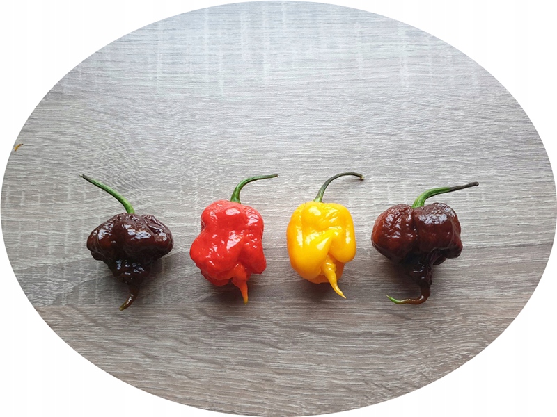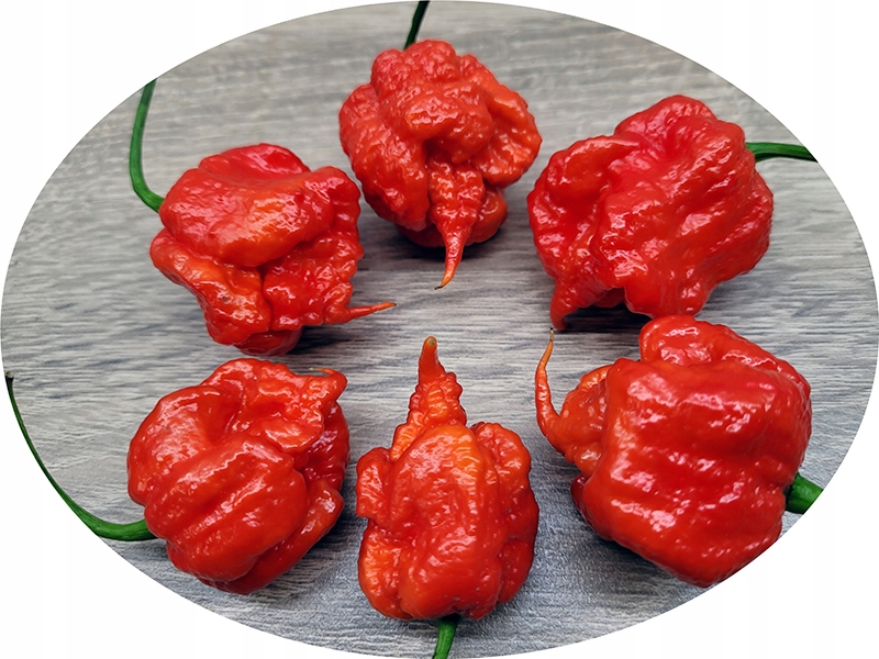 Також відомий під красивим кодом HP22B, він був створений в результаті схрещування перцю Bhot Jolokia та Red Habanero. Carolina Reaper на даний момент є найгострішим перцем у світі. Виведений у 2013 році, через рік він потрапив до Книги рекордів Гіннеса як найгостріший перець у світі, посівши місце тринідадського скорпіона. Середня різкість становить приблизно 1 600 000 одиниць за шкалою Сковілла, але рекордні зразки досягали понад 2 200 000 SHU. На даний момент доступний в декількох кольорах. Найновіший сорт Браун :) Також доступний у нашій пропозиції.