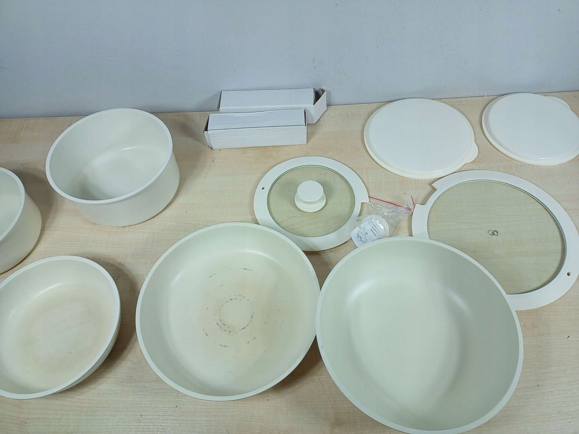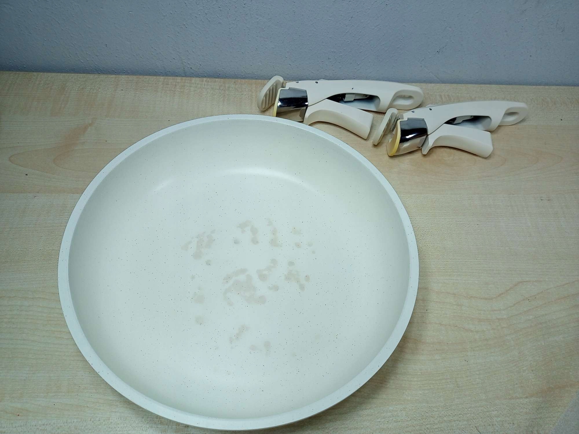 - Вміст: 2 сковороди, 2 каструлі, 1 сковорода, 2 знімні ручки, 2 скляні кришки з силіконовими круглими, 2 герметичні кришки
