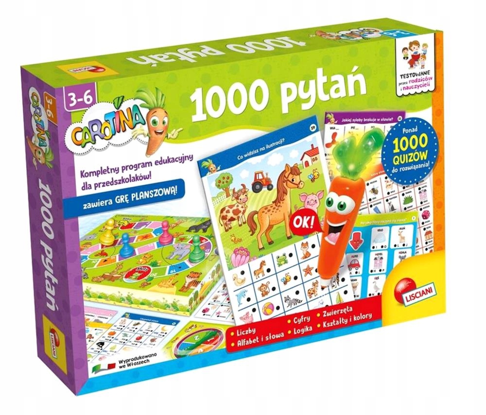 Оплачивая «CAROTINA 1000 PYTAŃ», вы можете быть уверены, что данное изделие из каталога «Логические и образовательные» будет доставлено из Польши и проверено на целостность. В цене товара, указанной на сайте, учтена доставка из Польши. Внимание!!! Товары для Евросоюза, согласно законодательству стран Евросоюза, могут отличаться упаковкой или наполнением.