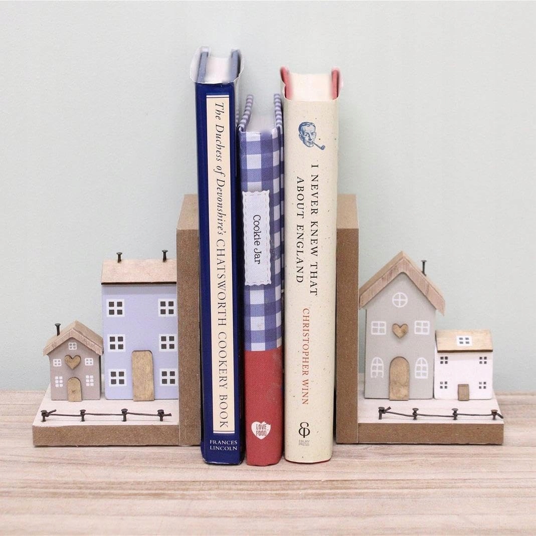 Дерев’яні будинки Букенди | Пара пошарпаних шикарних таунхаусів Bookends | Набір 2 дерев'яних книг для полиць