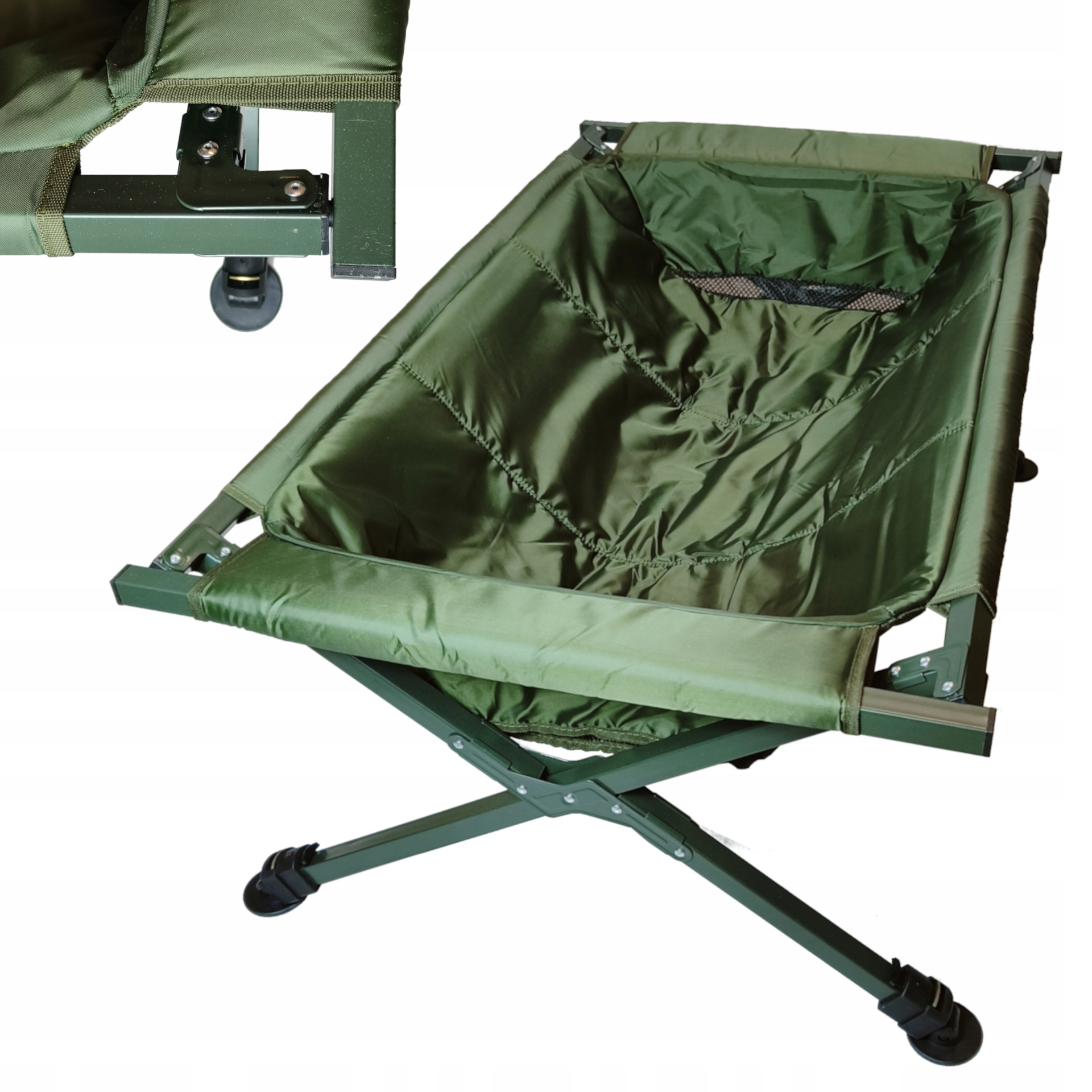 Колиска для коропа для утримання спійманих екземплярів. Виготовлений з металевих профілів і високоякісного матеріалу. Простий спосіб розкладання дозволяє легко та безпечно зберігати спійману рибу. Він має регульовані ніжки та обшитий м'яким матеріалом. Зовні є кишеня на липучці для зберігання дезінфікуючого засобу. У комплект входить кришка для зберігання.