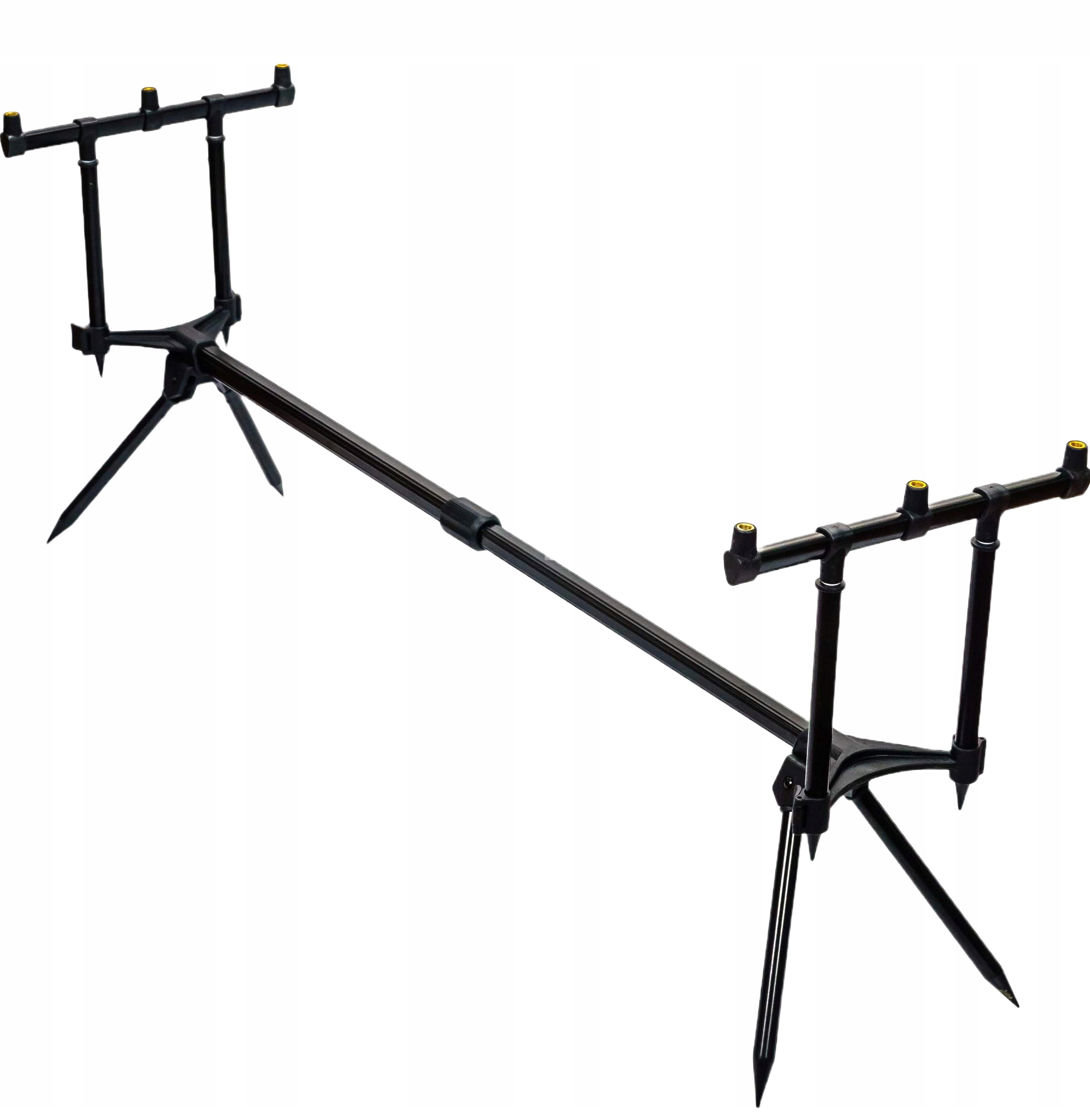 Універсальний rod pod для тих, хто шукає стабільний штатив, з можливістю розміщення до 3 вудилищ одночасно! Кут нахилу вудилищ можна регулювати декількома способами, в тому числі, регулюючи базбари і довжину підставки, що дозволяє адаптуватися до будь-яких умов на рибальському угідді. Підставка виготовлена з легкого алюмінієвого сплаву з гострими кінцями, що дозволяє легко розмістити її на твердій поверхні. Дуже великою перевагою є швидкість розкладання та складання вуд-поду.
