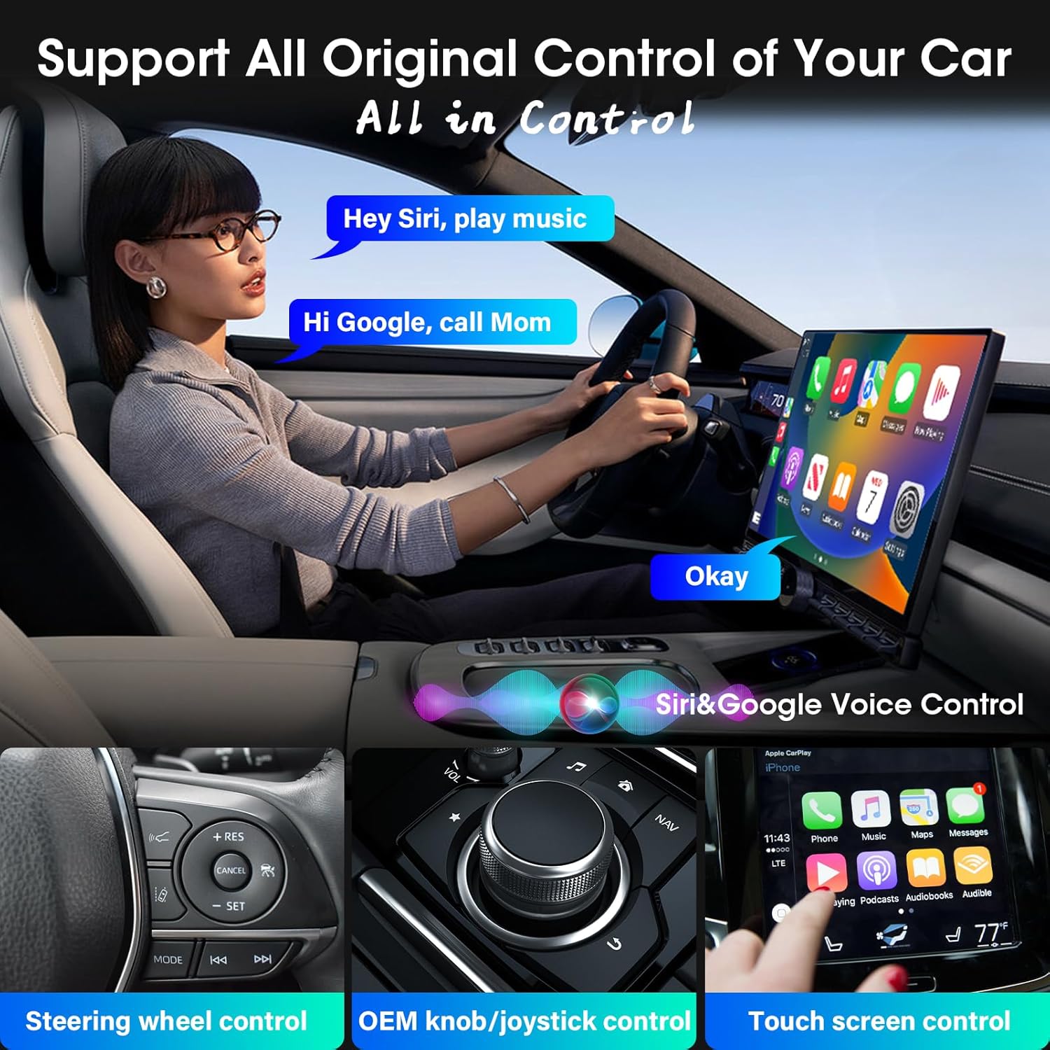 • ✅ Підтримка: бездротовий CarPlay і Android Auto