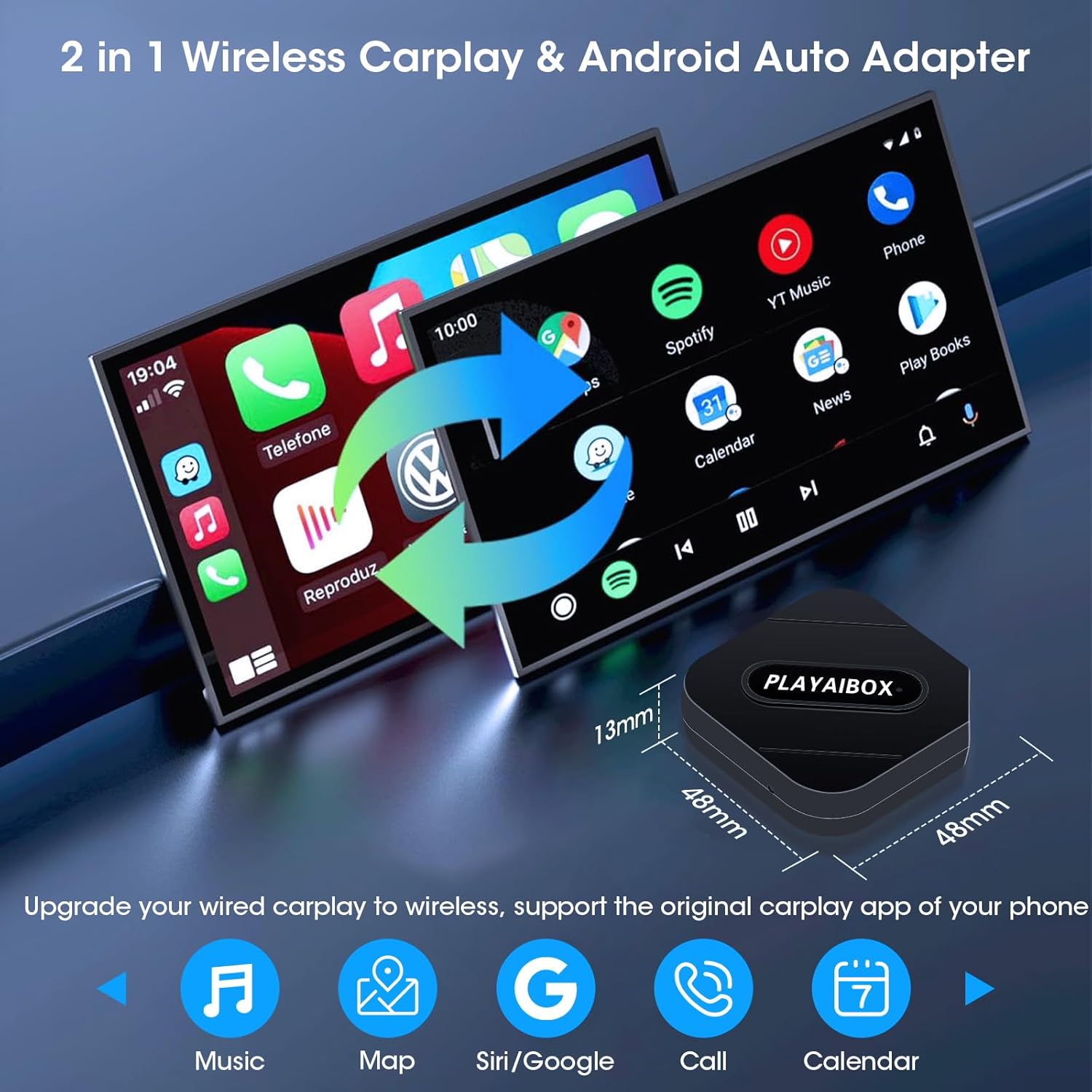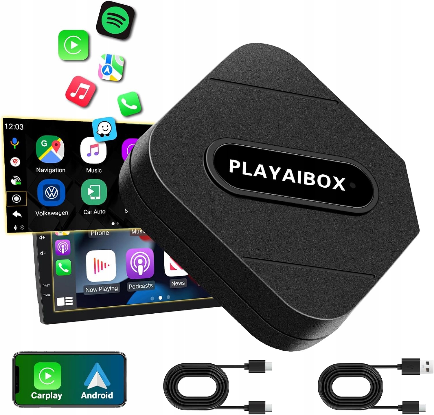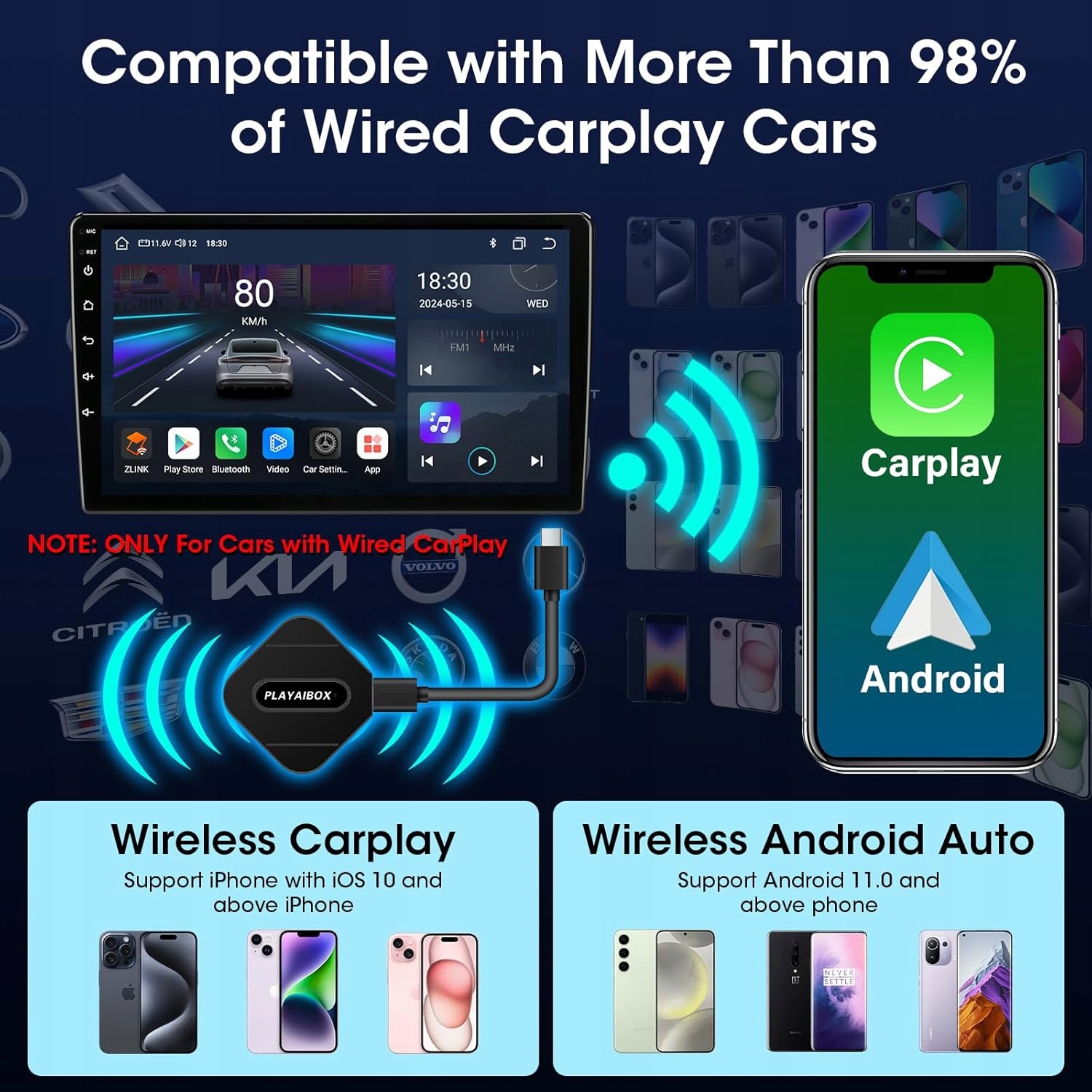 • ✅ Сумісність: транспортні засоби з дротовим CarPlay / Android Auto (з 2016)