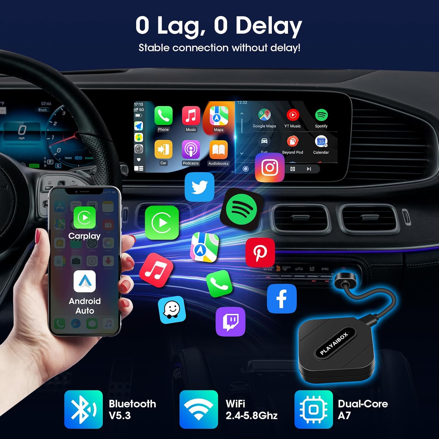Дякую до чіпа A7, адаптер забезпечує миттєве, стабільне з’єднання без затримок - без розривів музики, без порізів у картах.