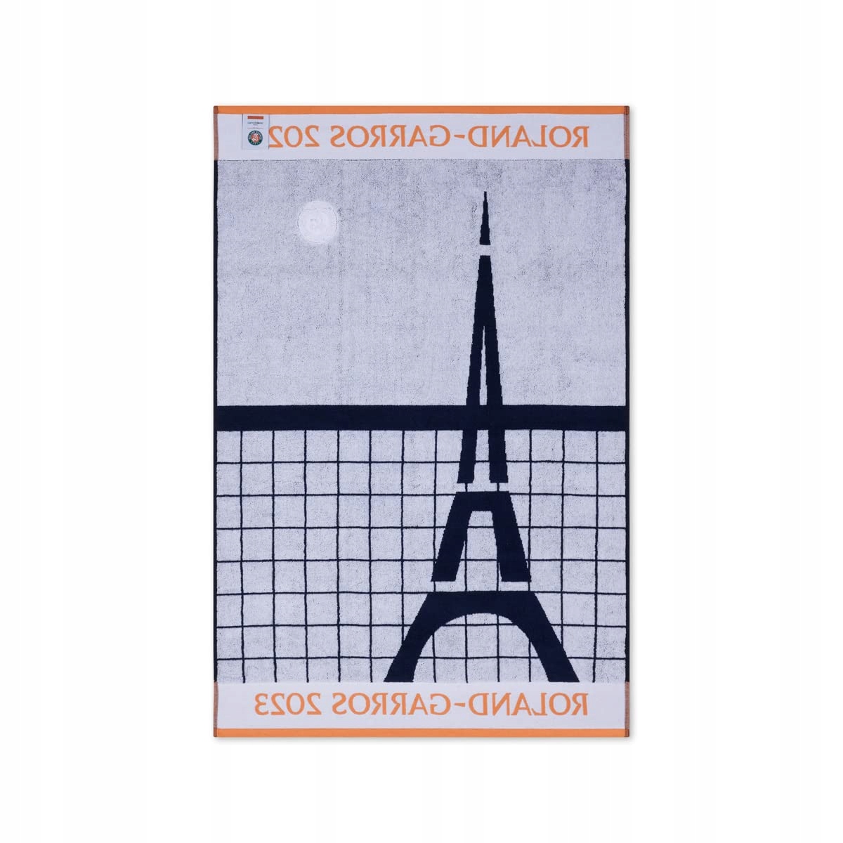 Відкрийте для себе елегантний пляжний рушник ROLAND-GARROS 2023, натхненний тенісним турніром. Графічні лінії Ейфелевої вежі, гармонійно поєднані з темно-синім фоном, створюють унікальний дизайн. Виготовлений зі 100% жакардової бавовни, він гарантує комфорт, поглинання та довговічність. Ідеальний компаньйон для відпустки для любителів турніру Великого шолома.