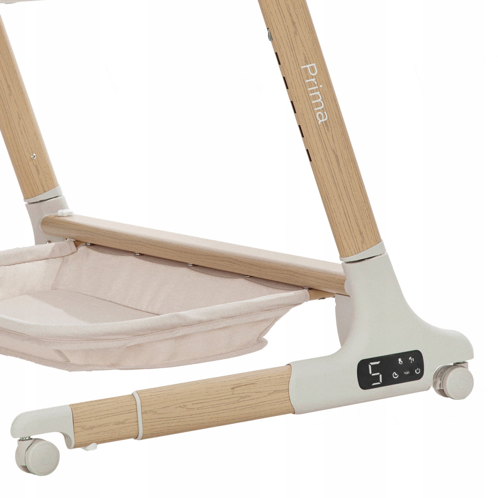 Carrello Prima - це ліжечко , оснащене електронною системою коливання , регулювання висоти та багатьох інших корисних функцій. Літть призначене для дитини від народження до ваги 9 кг . Його можна використовувати як незалежне ліжечко або як ліжко для ліжка батьків, завдяки зниженій бічній панелі. Використовуючи панель управління з підсвічуванням або дистанційним керуванням дистанційного керування, ви можете вибрати бажаний режим. Завдяки функції Bluetooth можна відтворювати мелодії з будь -якого пристрою. Функція динамічного режиму дозволяє автоматично вмикати розгойдування та рух музики , коли датчики виявляють рух дитини в ліжечці. Через 8 хвилин функції автоматично вимикаються. ліжко має 6 рівнів регулювання висоти сну, яке можна легко регулювати за допомогою кнопок. Опущена бічна панель дозволяє використовувати Carrello prima як додаткові ліжка до ліжка батьків, що сприяє спати разом. Набір включає ремені для безпечного прикріплення ліжка до ліжка батьків.