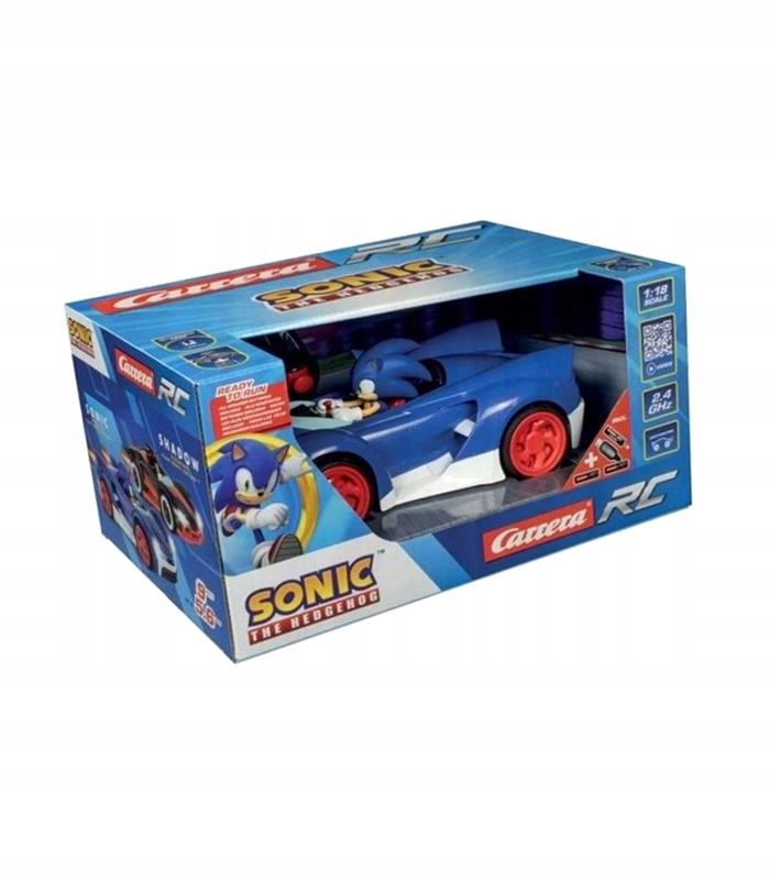 Герой комп'ютерних і відеоігор, їжачок Сонік з Sonic Team у своїй машині на дистанційному керуванні. Транспортний засіб має ергономічний контролер, що використовує технологію 2,4 ГГц, повний повний контроль. Корпус в масштабі 1:18 виготовлений з міцного матеріалу. Пневматичні шини, функція автоматичного вимкнення та світлодіодне освітлення. Для гри в приміщенні та на вулиці. У готовий комплект входять: USB-кабель для зарядки, змінний і ефективний LiFePO4 акумулятор 3,2 В 700 мАг і акумулятори для контролера: 2 x AAA.