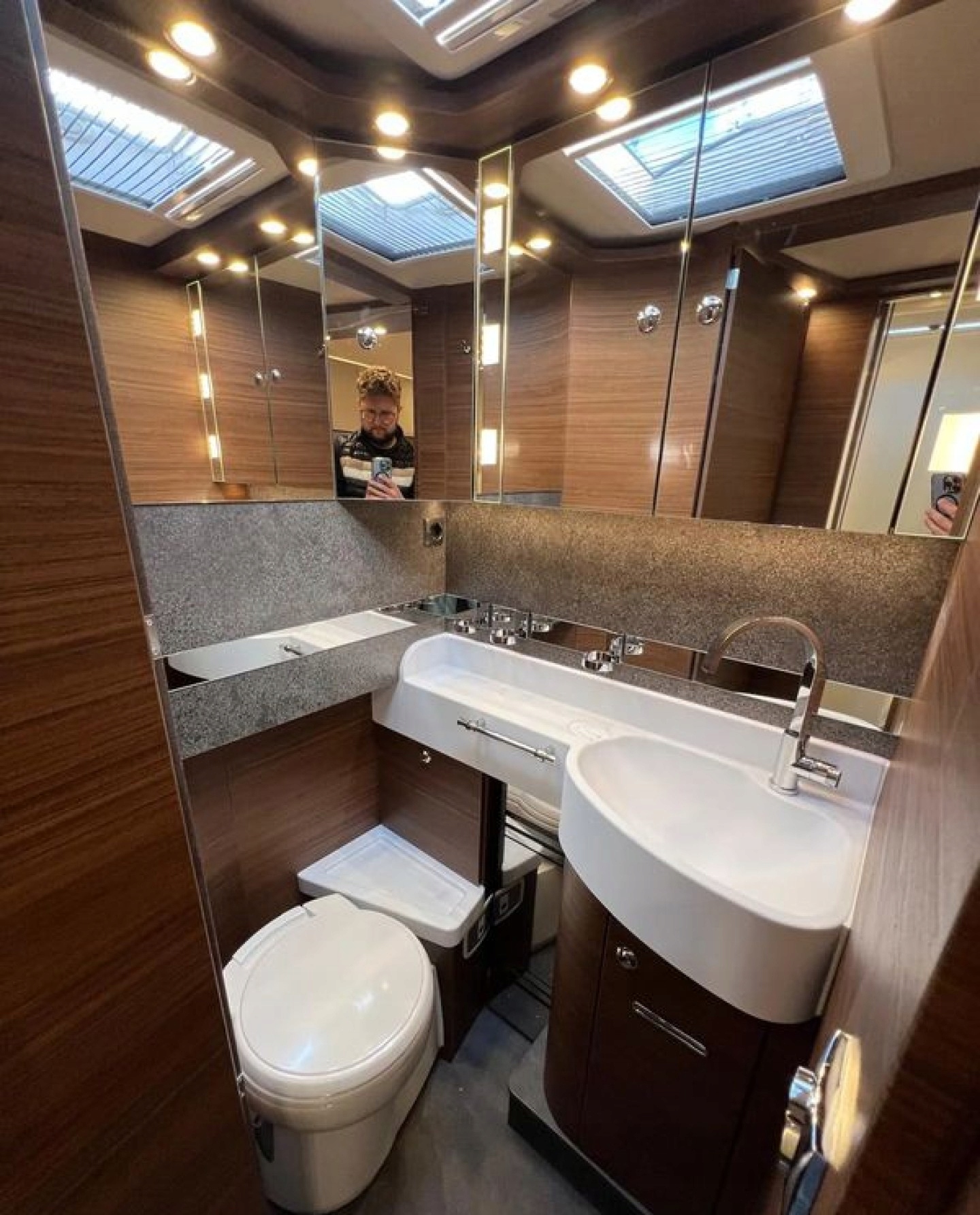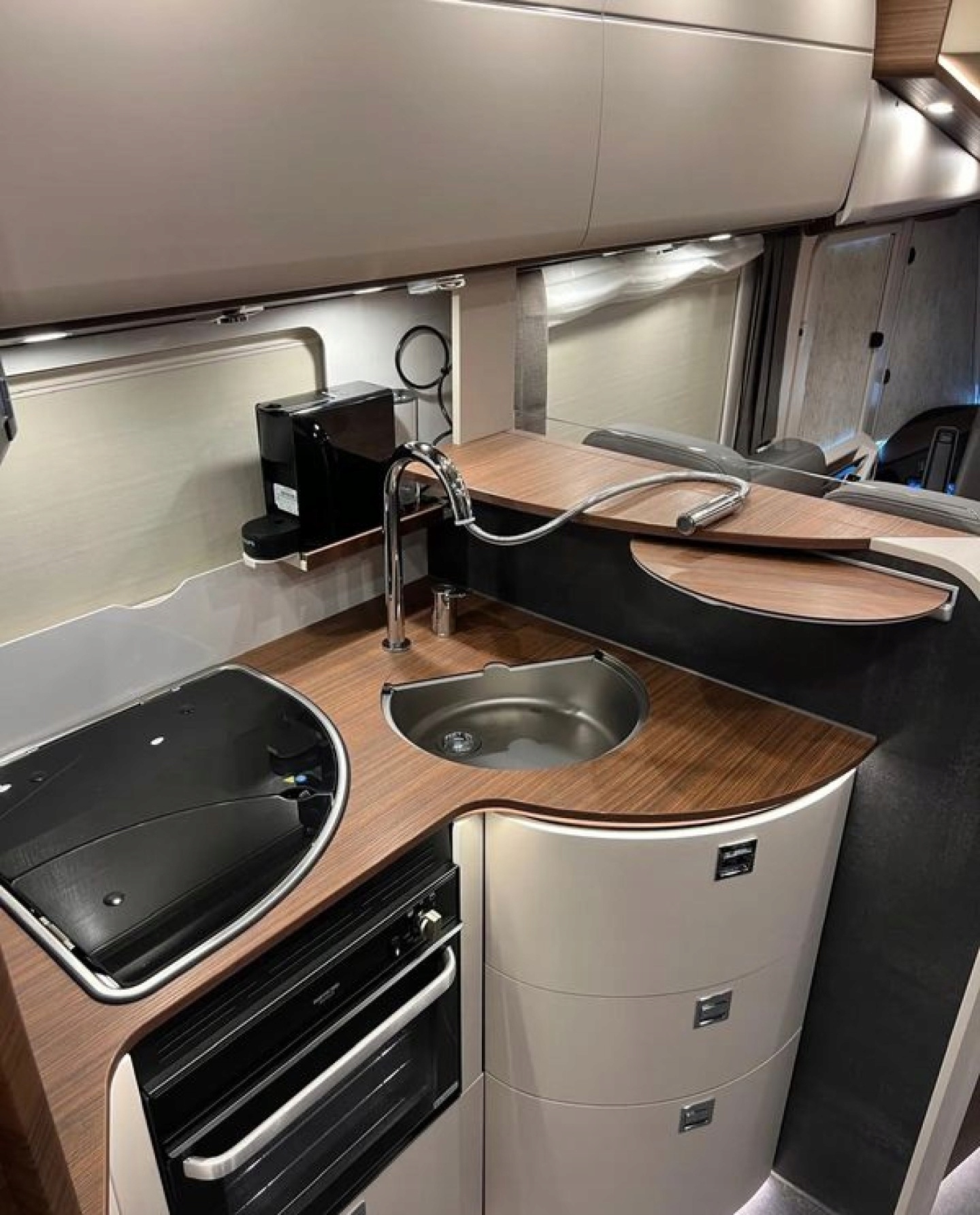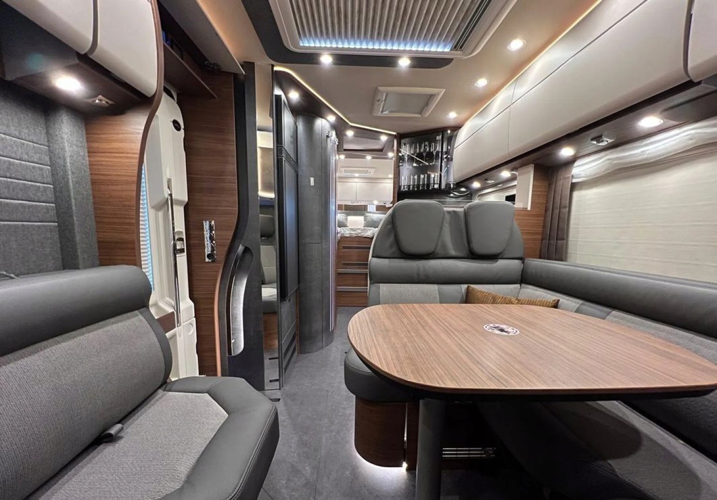 кабелі для супутникової системи, USB-роз’єм у шафі над заднім ліжком, покращений гараж для скутера з повстю та сітками для багажу, вентиляцію туалету SOG через димохід на даху, 92-літровий паливний бак, кабелі для камери заднього виду (один об’єктив), електричне стоянкове гальмо, дорожній знак помічник розпізнавання, інструмент панель з кольоровим дисплеєм,Регулювання сидінь водія та пасажира (по куту нахилу та по висоті, спереду та ззаду),Центральний замок дверей салону та житлової зони з дистанційним керуванням та функцією «Coming Home»,Сенсор дощу (Mercedes),Кольорові дзеркала автобуса чорно-білі, Мультифункціональне кермо, Геліоматеріали, Передня вісь з підвищеною вантажопідйомністю, Вхідні двері XL «Premium Two 2.0» (шириною 63 см) з подвійними замок, вікна та москітна сітка, радіо підготовка з даховою антеною DAB+, 4 динаміки, прийом DVB-T2, дизайнерська барна стійка з тримачем для скла та набором склянок над кухнею, зарядний пристрій/підсилювач, мультимедійна система MBUX 10.2" з навігацією та DAB+, Truma DuoControl CS, задні опори рукоятки для запобігання розгойдування в нерухомому стані, камера заднього виду з одним об’єктивом і монітором 7"