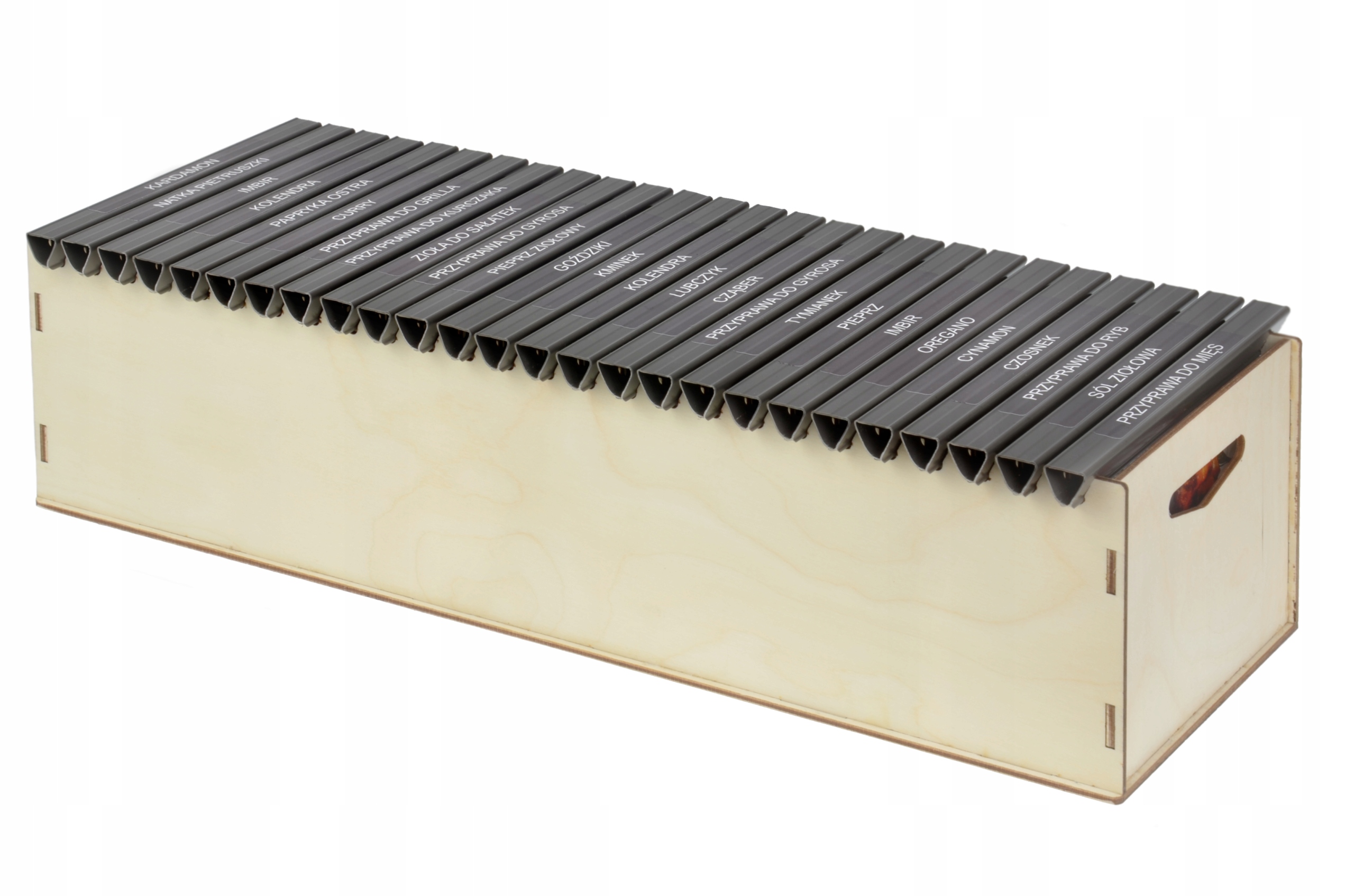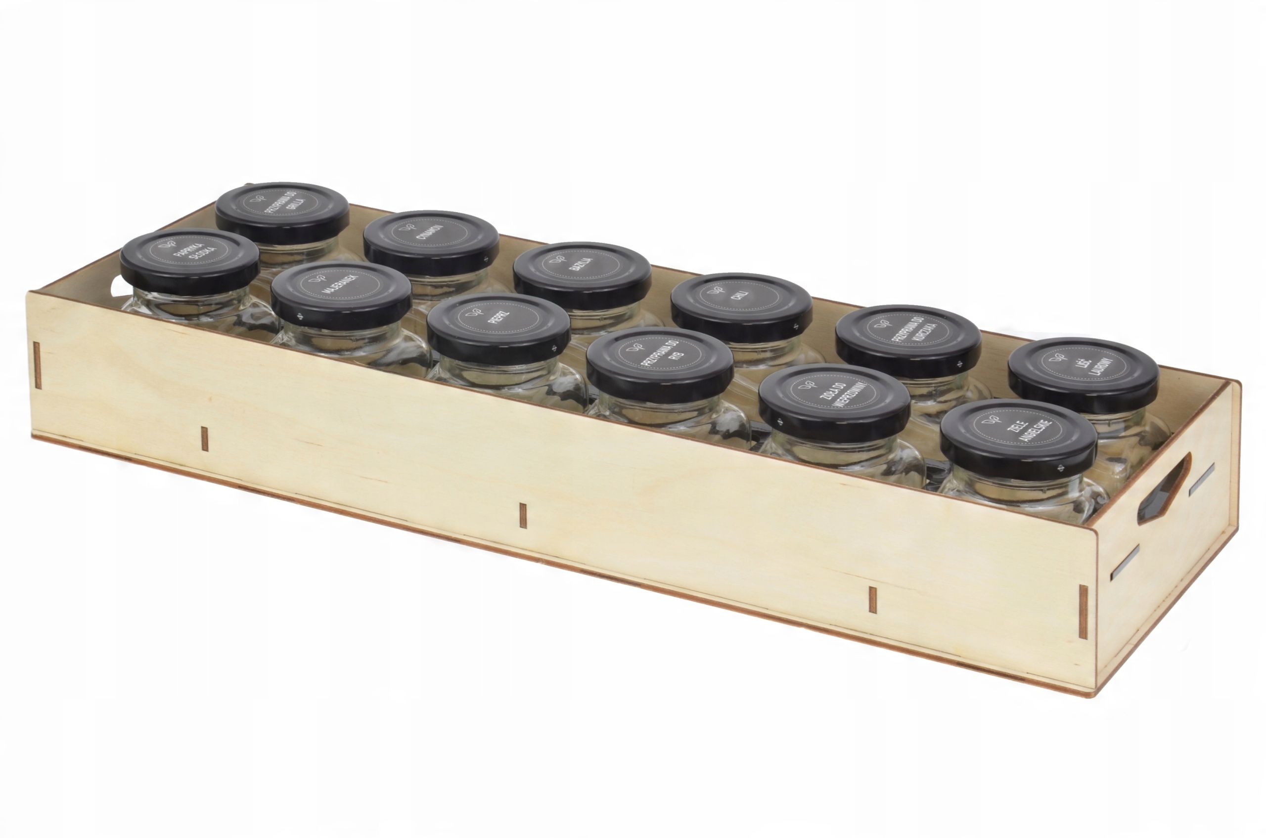 Практична форма ящика, міцна фанера та зручні ручки дозволяють легко вийняти та покласти всю пряність у ящик.