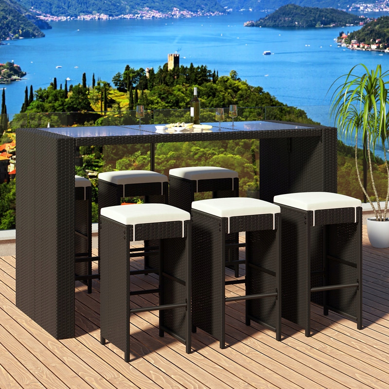 з барного столу та 6 барних стільців із подушками для сидіння.