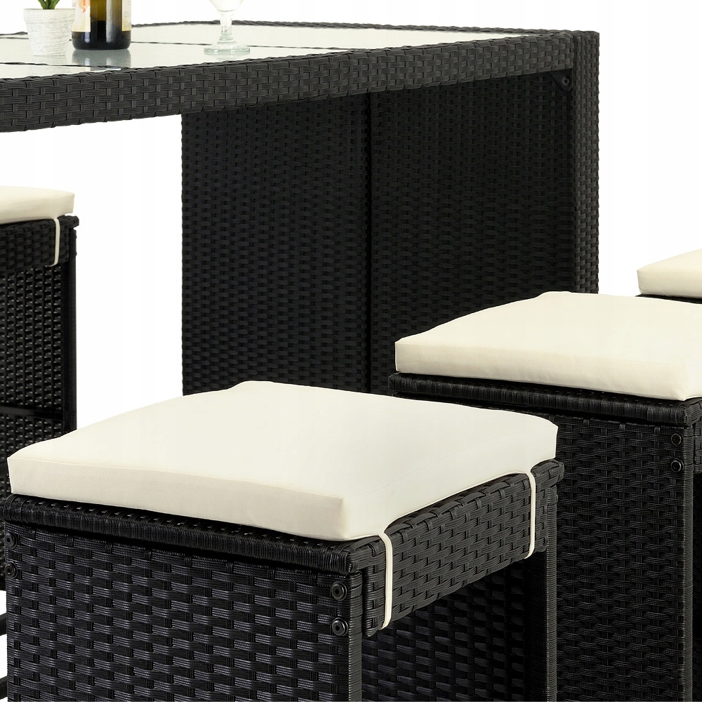 Плетені елементи комплекту для сидіння з поліротангу були спеціально розроблені для садових меблів.