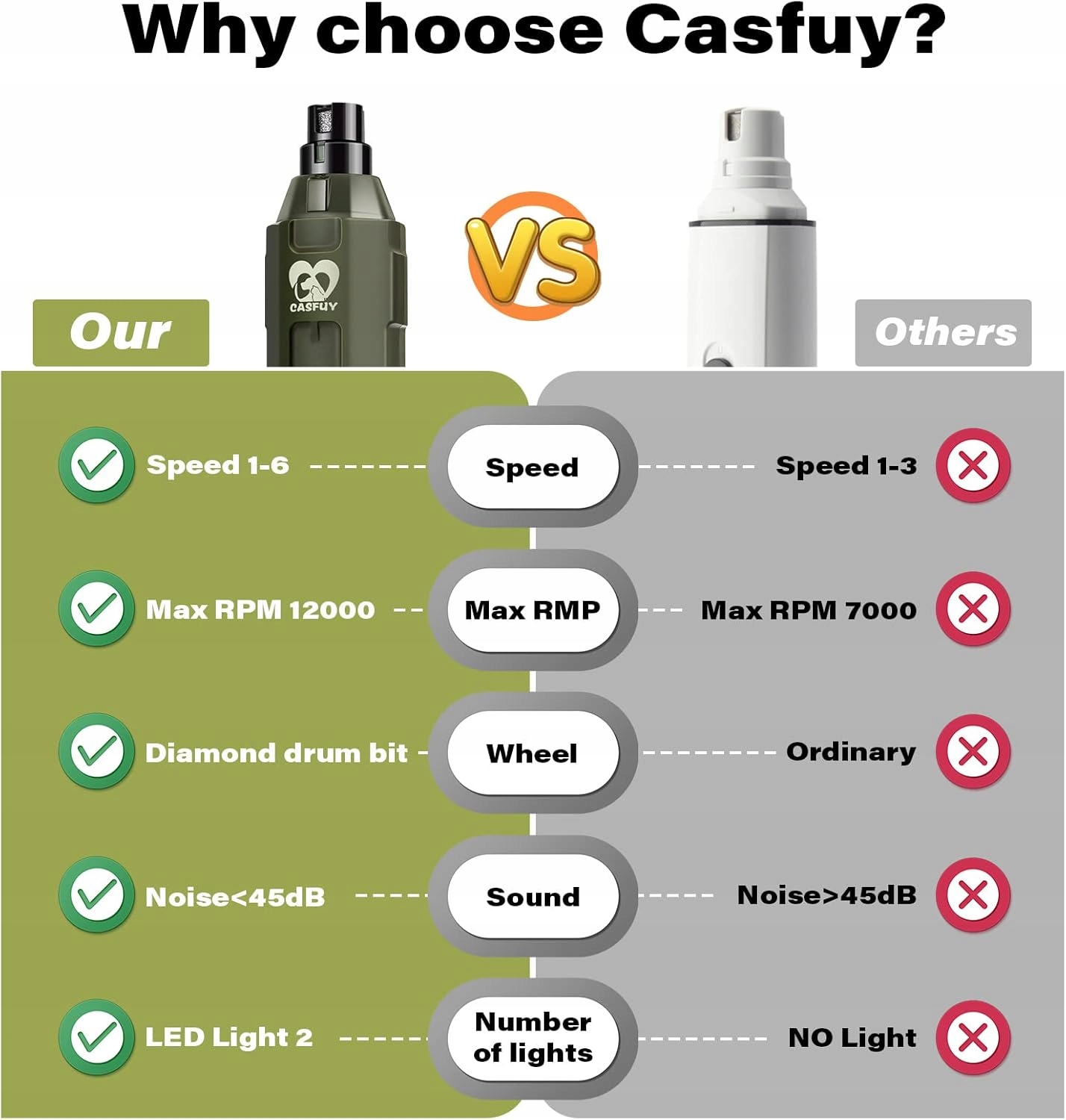Електрична шліфувальна машина для нігтів Casfuy - безпечне та тихе обрізання; 6 швидкостей; подвійне світлодіодне освітлення