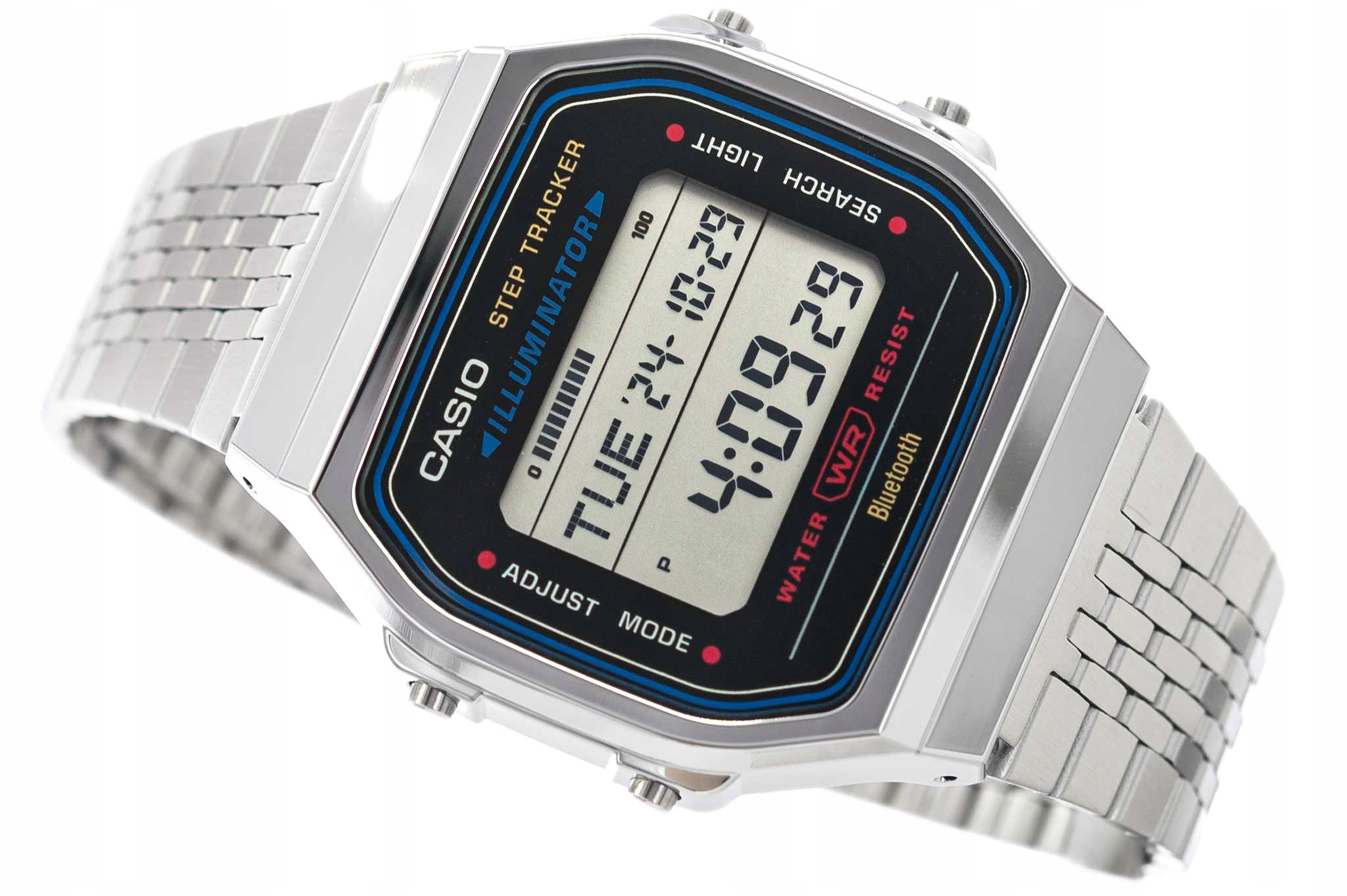 - Bluetooth: дозволяє бездротове підключення до телефону та функції керування, зокрема: крокомір: діаграма підрахунку кроків із п’ятьма рівнями інтенсивності вправ, відображення спалених калорій, журнал вимірювань секундоміром, автоматичне налаштування часу (4 рази на день), світовий час приблизно для 300 міст