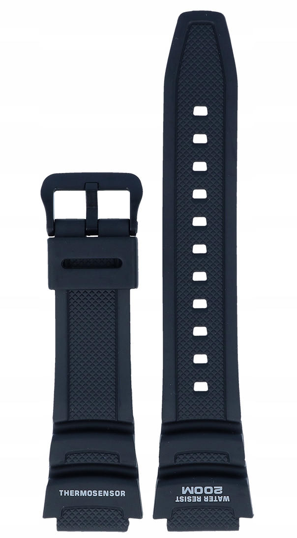 Чорний оригінальний ремінець для годинника Casio AQW-101-1AV. Для виготовлення пояса використовувався високоякісний каучук. Завдяки цьому ремінь стійкий до легких подряпин та інших механічних пошкоджень, а також не втратить свій колір при більш глибокому контакті з водою.
