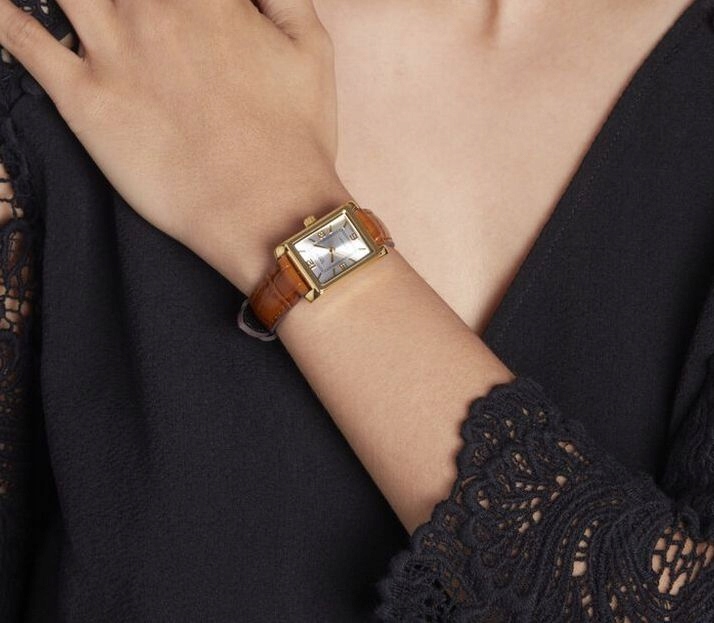 4 Конверт був зроблений з гіпоалергенної латуні, позолоченої постійним методом ПВД у золотих кольорах. Срібний, елегантний циферблат був покритий мінеральною гіркою. Водна стійкість на 3 атм робить таймер стійким до незначних бризок. Ціле закрито стильним і зручним у використанні, міцним поясом, виготовленим з високоякісної натуральної шкіри.